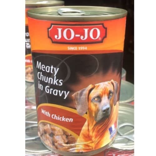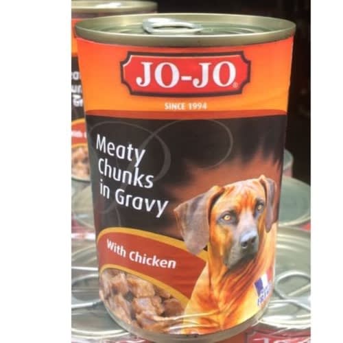 JO-JO Premium 400g With Omega 3 and Omega 6 essential fatty acids. FEEDING GUIDE: Recommended rations for a healthy adult dog: Weight of dog Cans per day 3-9kg 1-2 10-15kg 2 1/4-23/4 16-25kg 3 – 4 Recommended rations for a healthy Dog: Depends on dog age and size.