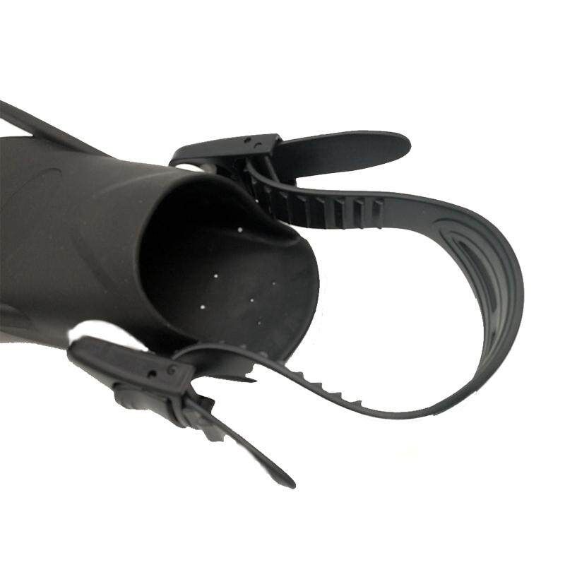Open Adjustable Heel:The open adjustment allows for multiple sizes for sharing with friends and family. Release Clip: Easily release clip, you can take on and off fins quickly. Comfortable Foot Pocket: and comfortable foot pockets made of TPR material, match with fin socks will be perfect. Flexible Fin : High dive-tech design, extremely flexible and creates a lighting speed snap propelling you through the water with ease.? Quality Construction:The bottom of each snorkeling fin contains a non-slip grip for added security. Compact and Lightweight Short Fins: Travel friendly design, easily fitting in about any suitcase or backpack for swimming, snorkeling and diving.?