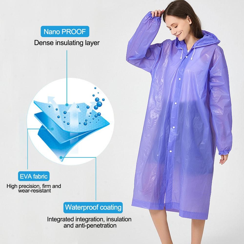Adult Eva waterproof raincoat is a useable rain coat for the rainy season. It is thick and has a hood. It is easy to wear and is button up.It is foldable and portable.