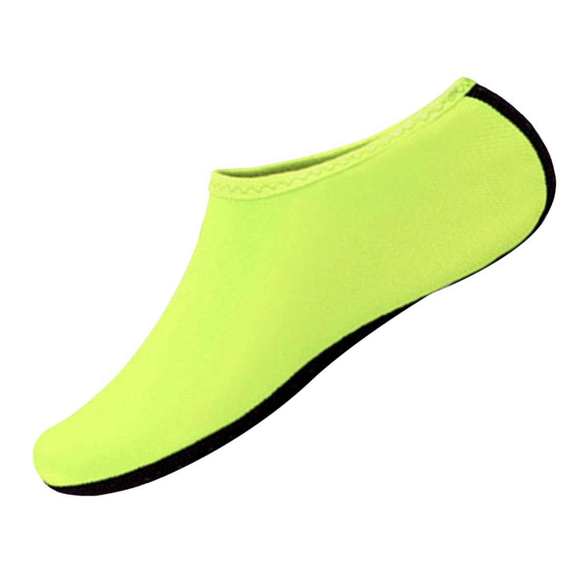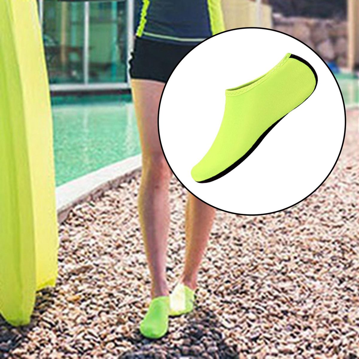 Protective Water Sports Shoes: Water shoes swimming diving socks are made of rubber soles + environmentally friendly mesh with excellent breathability and non slip resistance. Comfortable ro wear and protect your feet from hot beach.Quick Dry Water Socks Shoes: The upper is smooth and stretch that made of a diving material with breathable and quick dry ability. Like socks, it makes you feel great flexible and comfortable in wearing. Water shoes is lightweight and compressible, really convenient to carry when you go out.Unique Design: Smooth shoes neckline designed would take care of your ankles. The unique sole design based on an ergonomically molded which has good performance in cushion that protect your toe from shocking.Occasions: Suitable for scuba diving, snorkeling, surfing, swimming, boating, beach, water sports, home yoga and more.Beach Shoes: Perfect water sport accessory for men women, protecting your feet from scratch and prick.