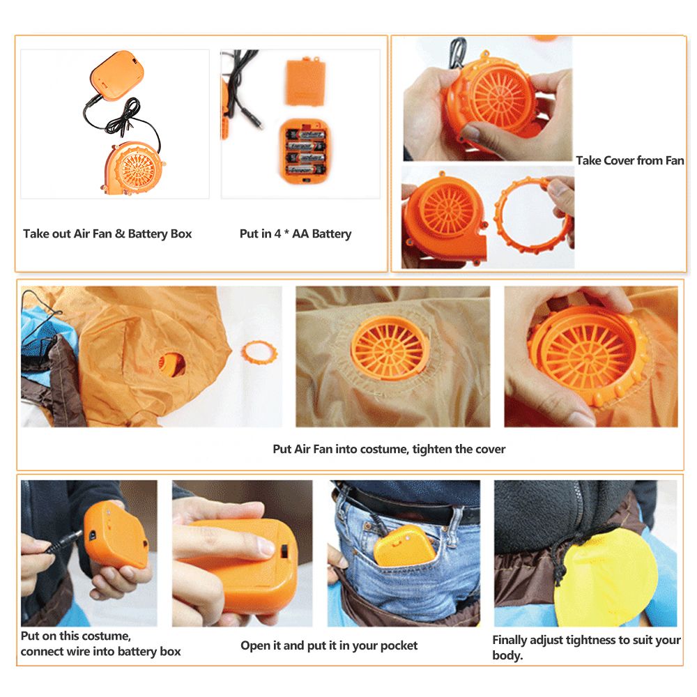 A fan blower is included for you to inflate the costume with ease.