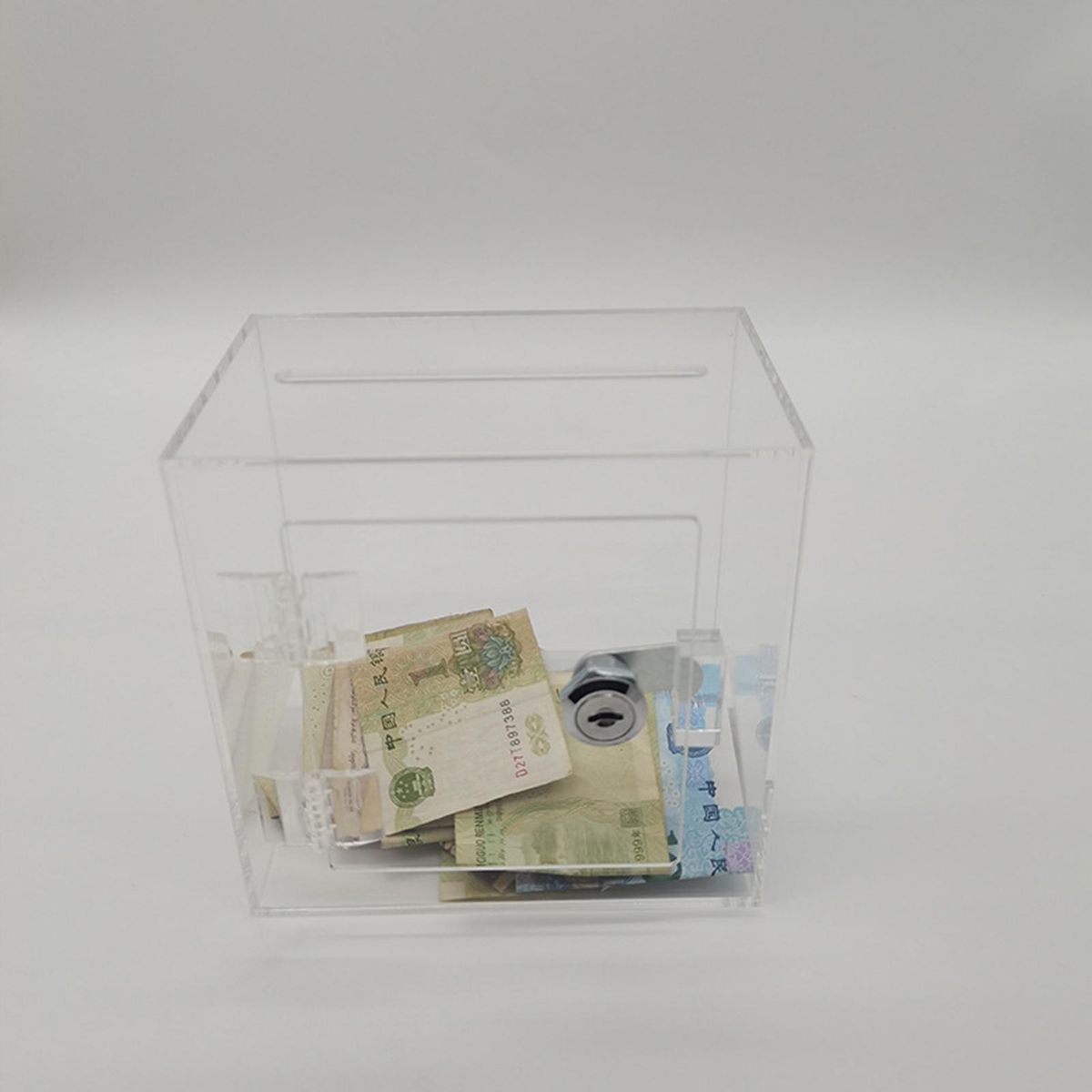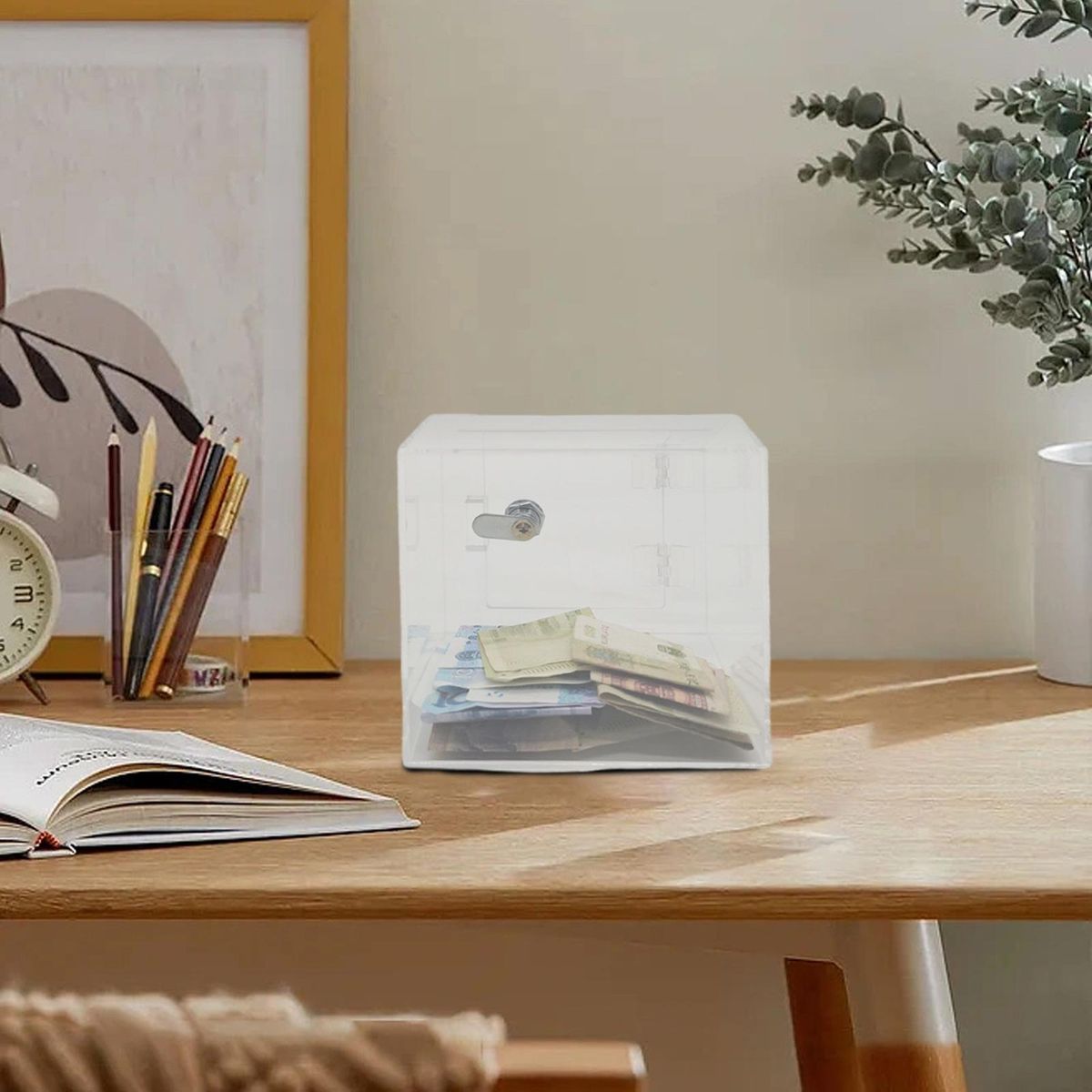 The savings box, the perfect piggy bank for kids that encourages them to start saving money from a young age. made of clear acrylic, this transparent piggy bank allows children and adults to easily see the growth of their savings, motivating them to keep increasing their savings. with a locked design, it provides a safe and fun way to store money as you need a key to open it. this makes it perfect for those who struggle with self-control when it comes to saving money consistently.