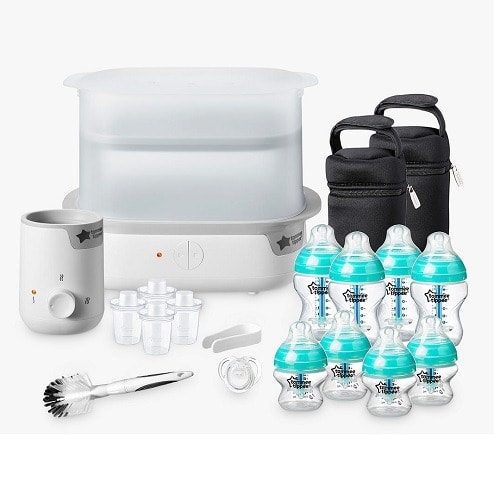 The Tommee Tippee Closer to Nature complete feeding kit includes all you need when bottle feeding your baby. In a sleek, space saving design, you can sterilise bottles in just five minutes. Contents stay sterile for up to 24 hours if unopened