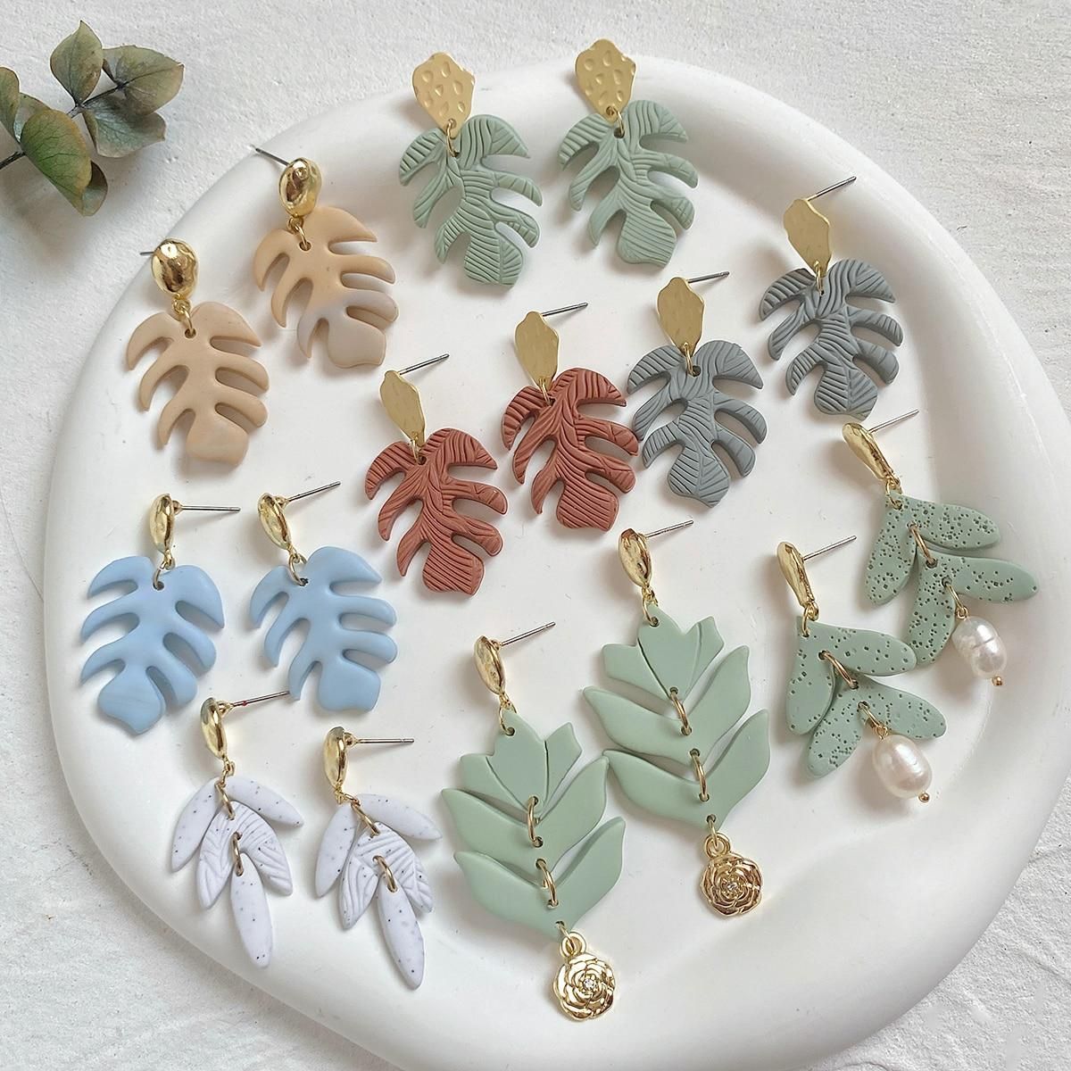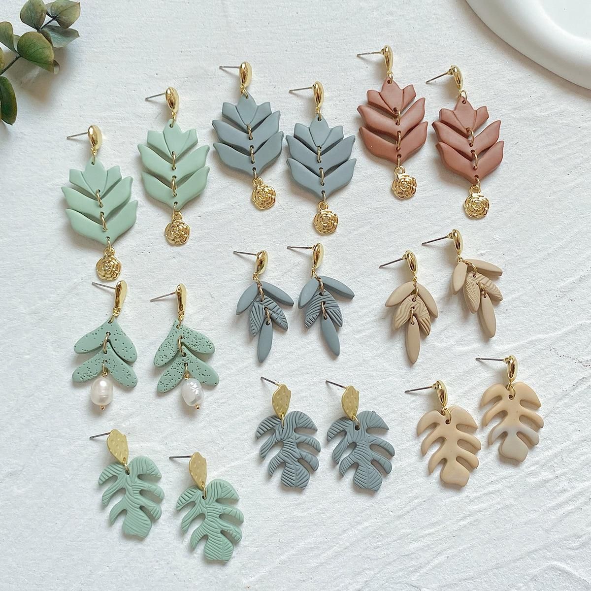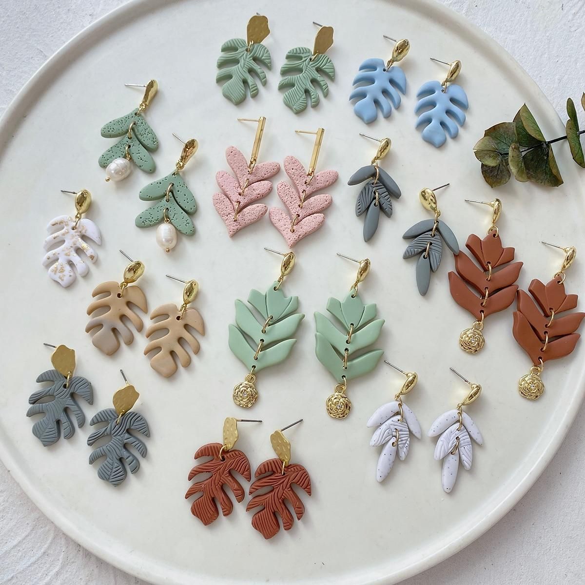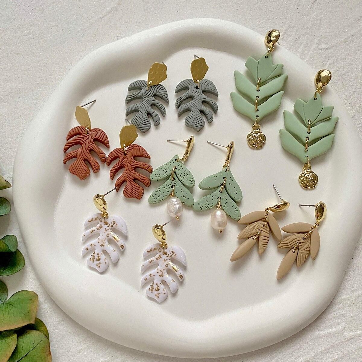 Buy AENSOA Handmade Textured Leaf Polymer Clay Earrings for Women Multicolor Molded Heart Floral Pearl Drop Earrings Jewelry 2022 in Nigeria