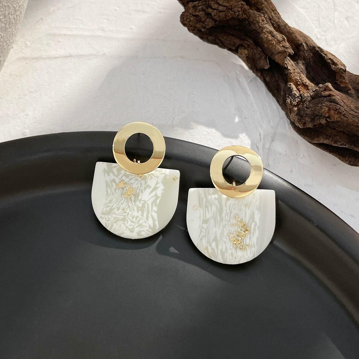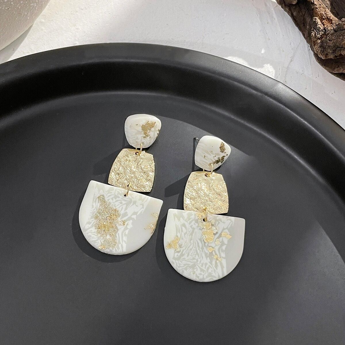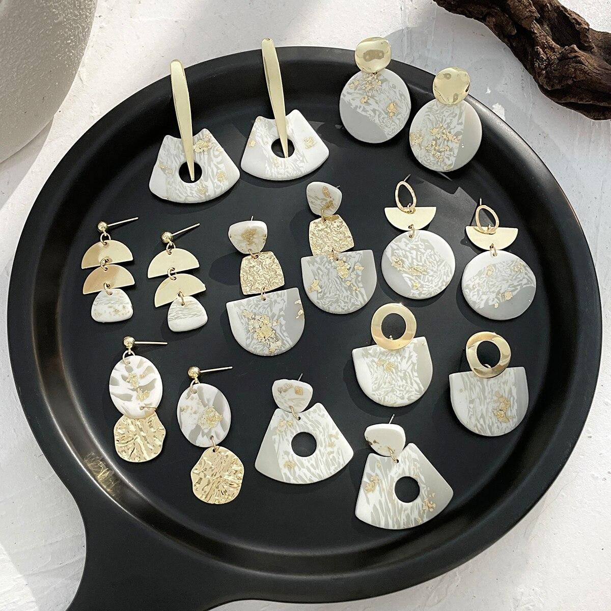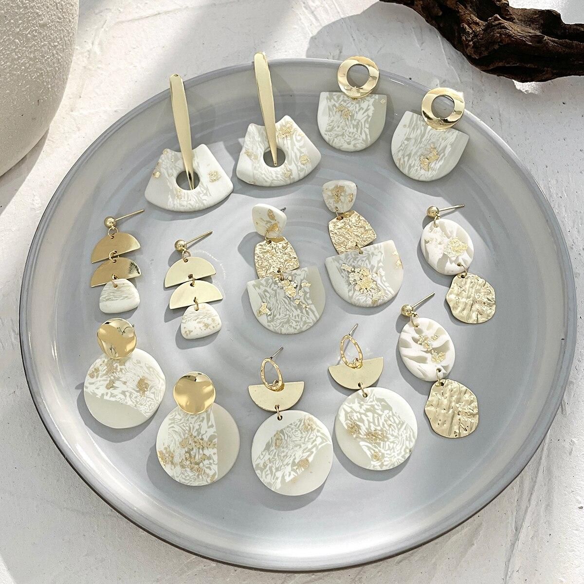 Buy AENSOA Handmade White Marble Textured Polymer Clay Earrings for Women Gold Color Metal Geometric Clay Drop Earrings Jewelry 2022 in Nigeria