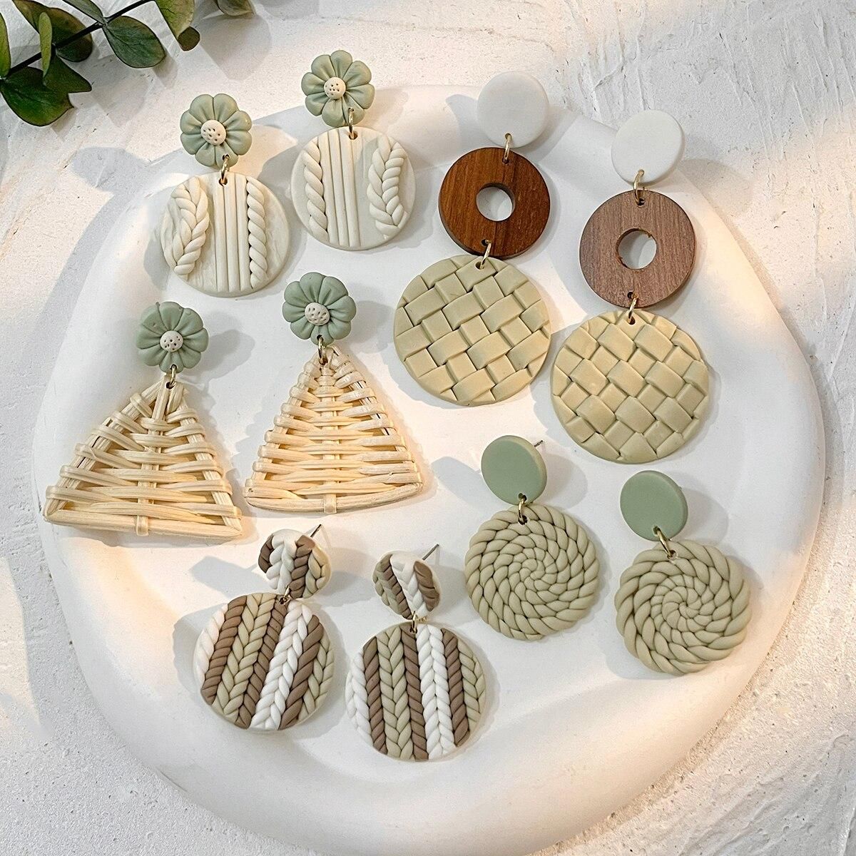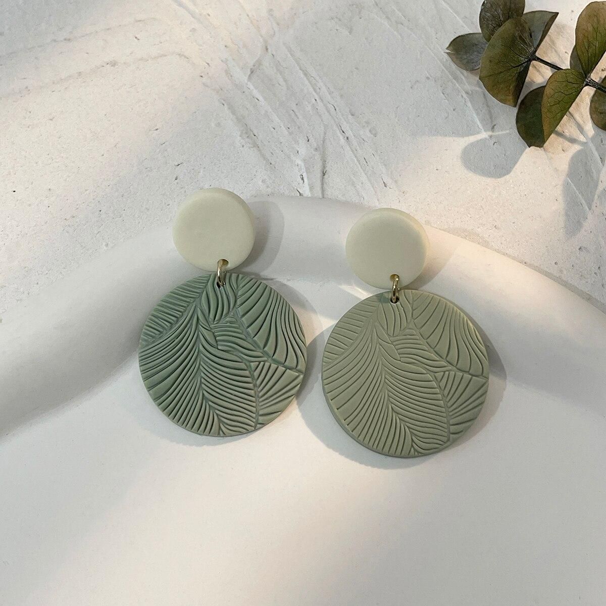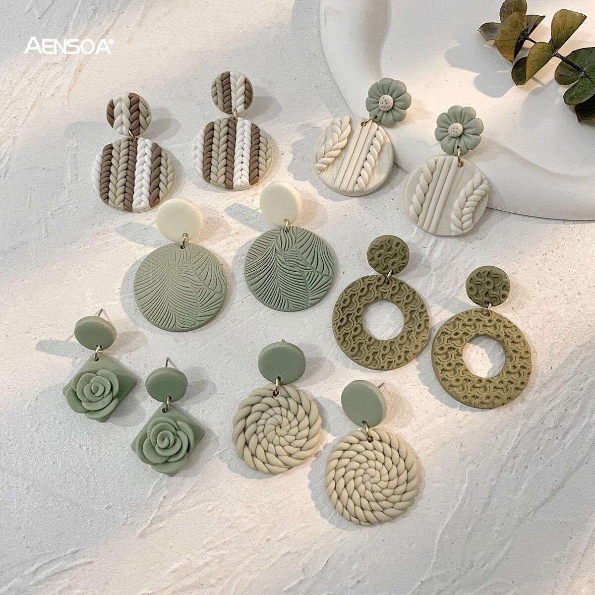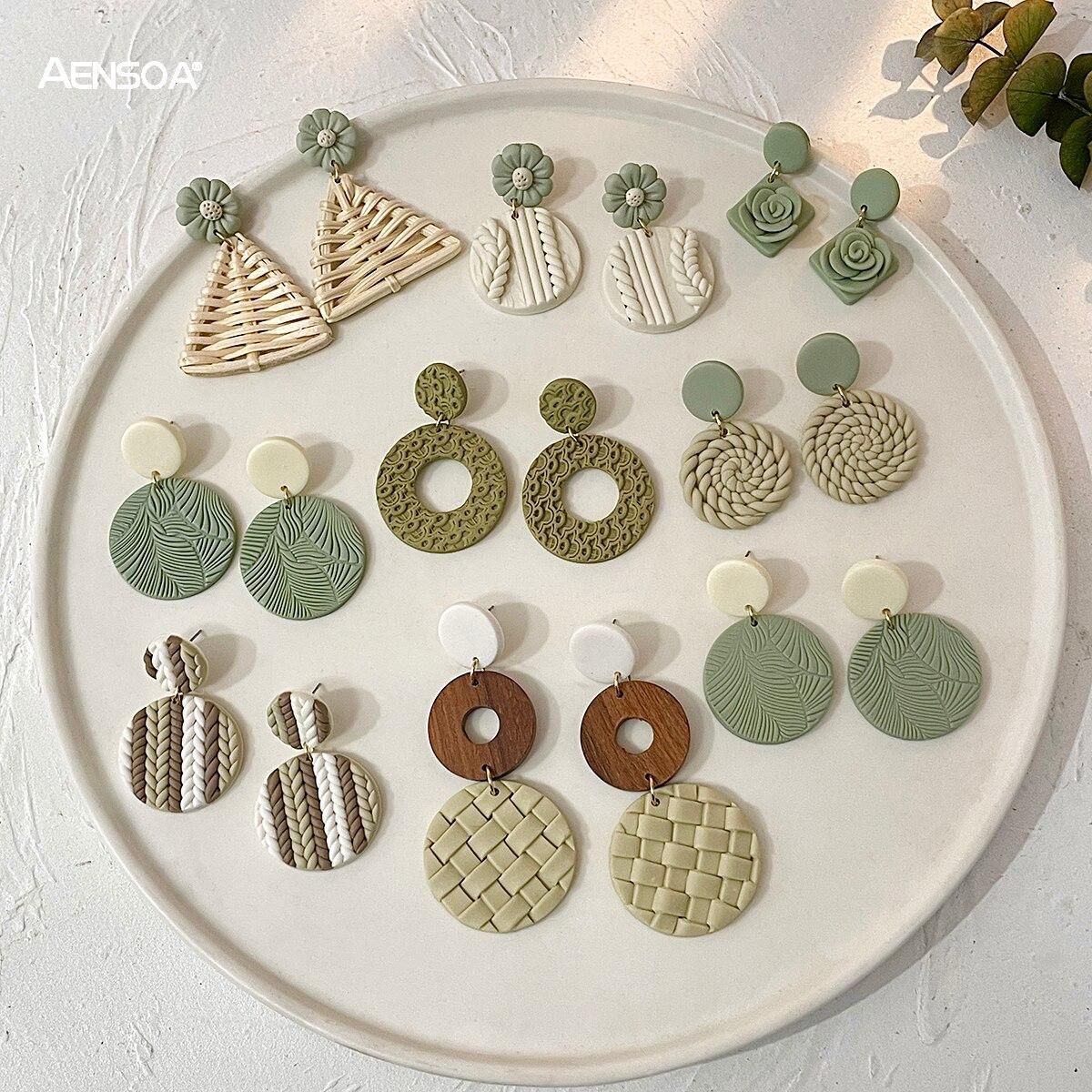 Buy AENSOA Molded Floral Leaf Pattern Green Polymer Clay Earrings for Women Handmade Knitted Geometric Round Drop Earrings Jewelry in Nigeria