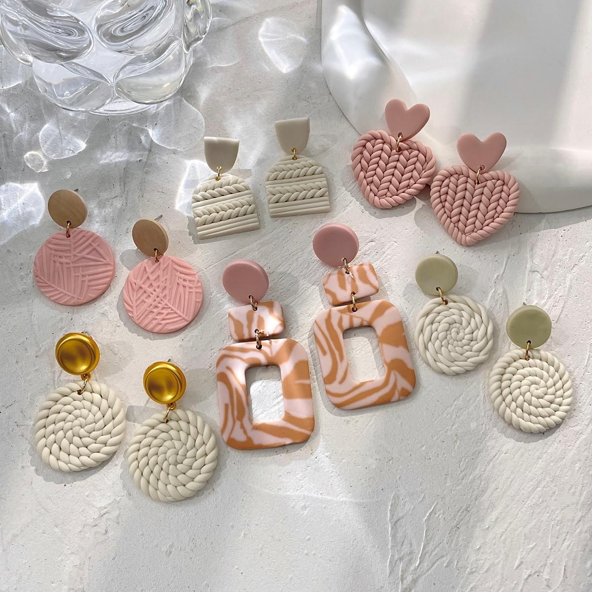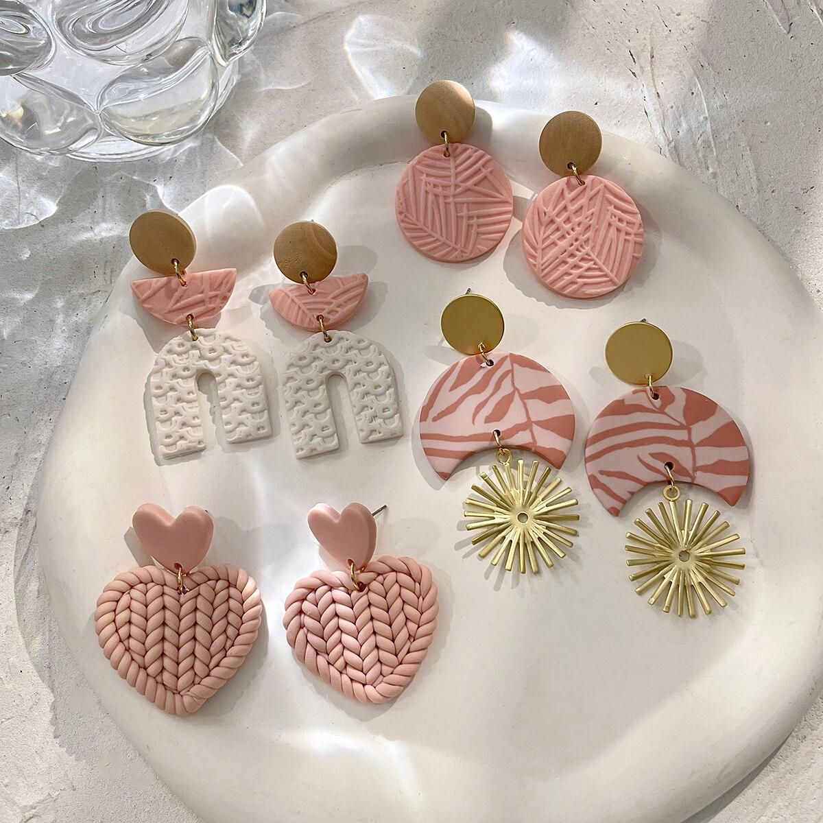 Buy AENSOA Unique White Pink Polymer Clay Earrings for Women Handmade Braided Molded Leaf Pattern Geometric Clay Earrings Jewelry in Nigeria
