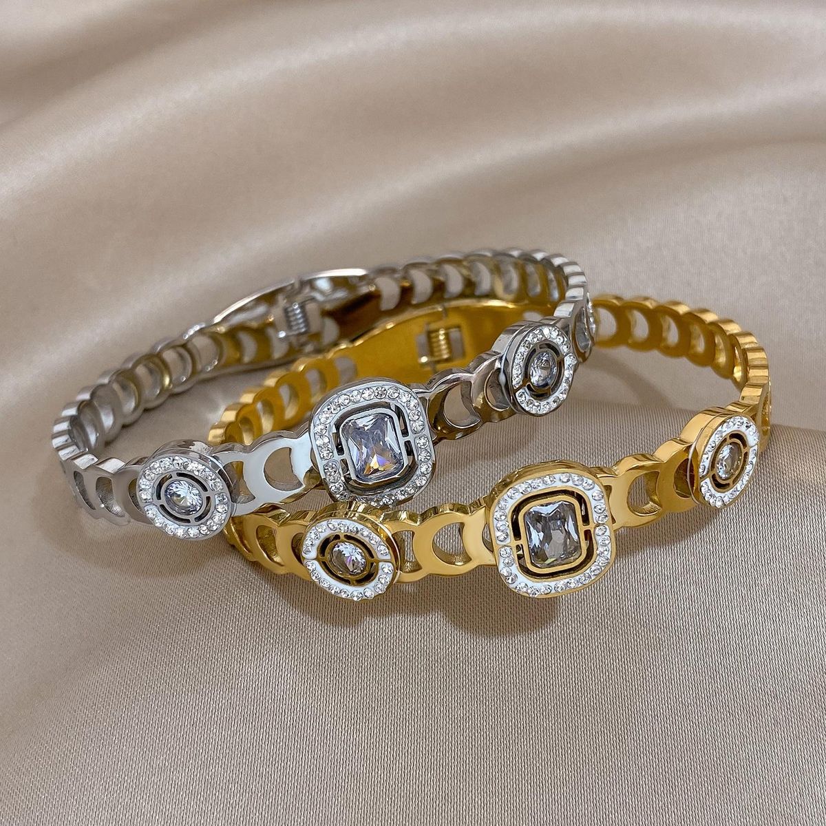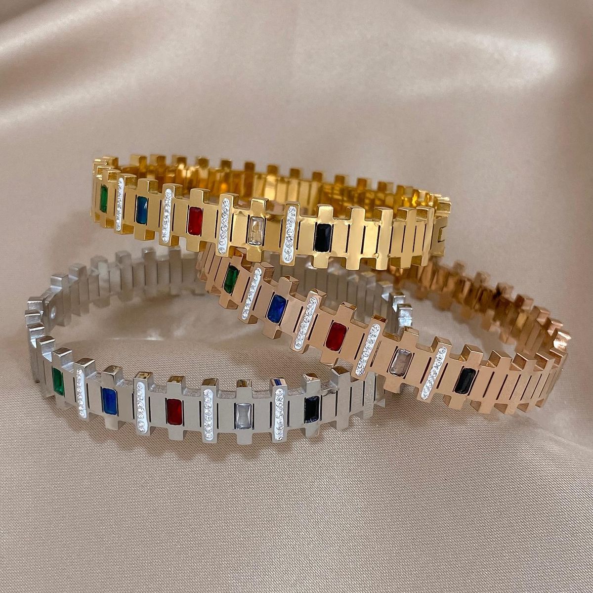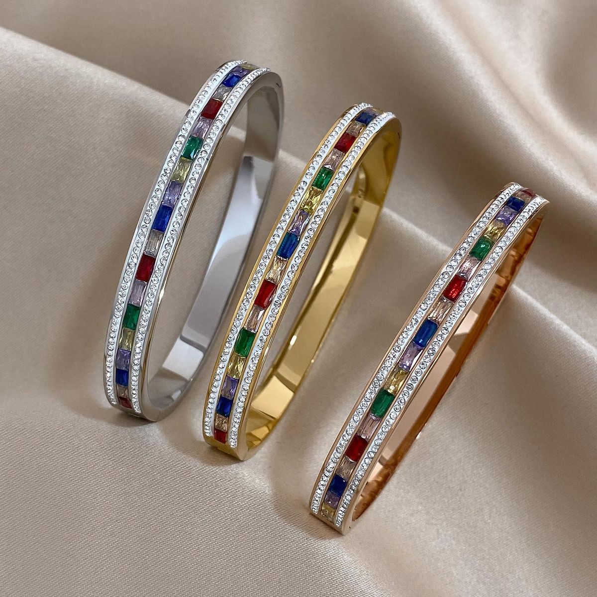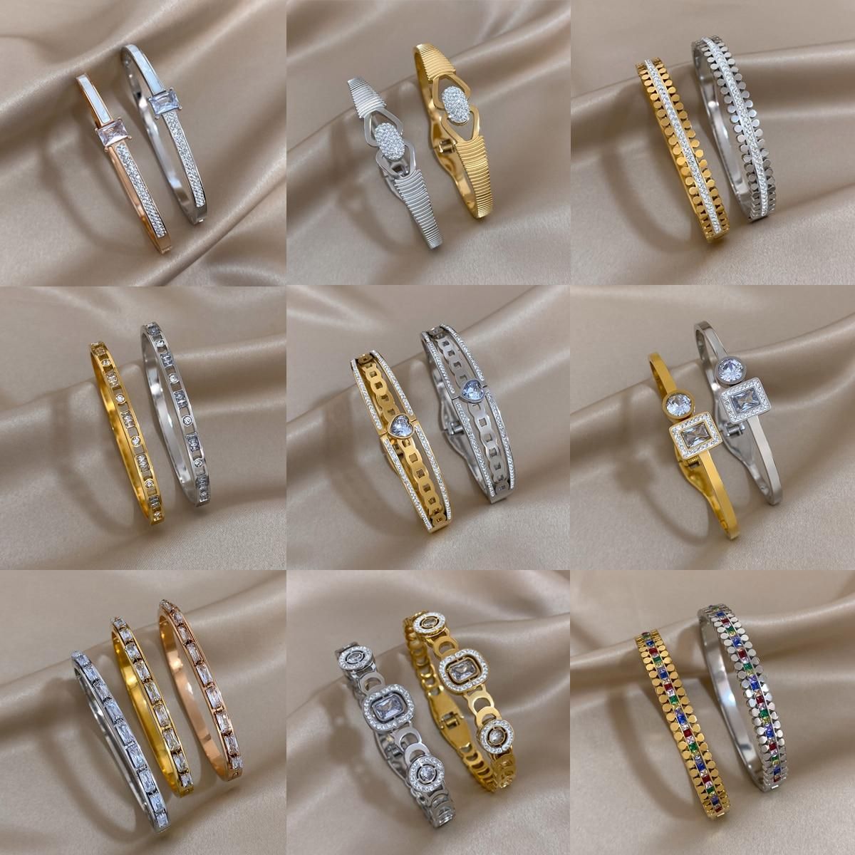 Buy AENSOA Vintage Chic Multicolor Big Rhinestone Zircon Stainless Steel Bangles Bracelets for Women Simple Charm Waterproof Jewelry in Nigeria