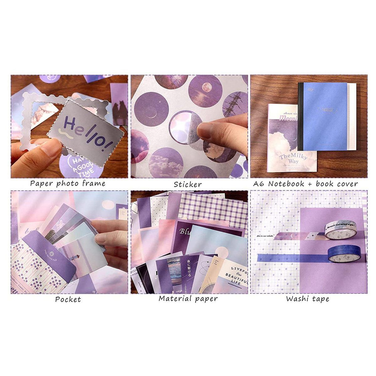 Purple Aesthetic Style:Everything in this kit is aesthetic style. Scrapbook paper and stickers have lots of aesthetic elements, such as clouds, moon, ocean, mountain, sky. If you looking for purple aesthetic scrapbook/junk journal kit, this is it. If you are scrapbook/journal beginner,this kit would be a good start because it has everything you need.