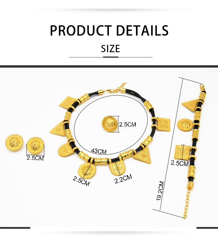Female African Coin Jewelry Sets Nigerian Luxury Party Gift Dubai Gold Color Necklace Earrings Bracelet Ring Wedding Jewellery