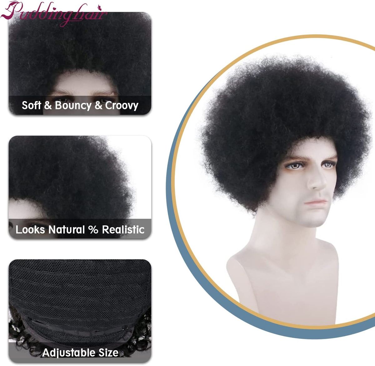 - Afro Wigs Men: 70s men afro wigs material made to be durable, breathable and soft. It looks very realistic and natural, suitable for long-term use.Glue-less Mens Hair Wigs,No Glue, Not Easy Shedding.Get Handsome and Comfortable the Same Time.