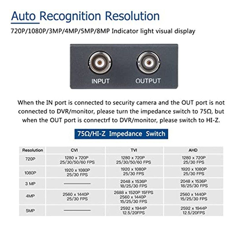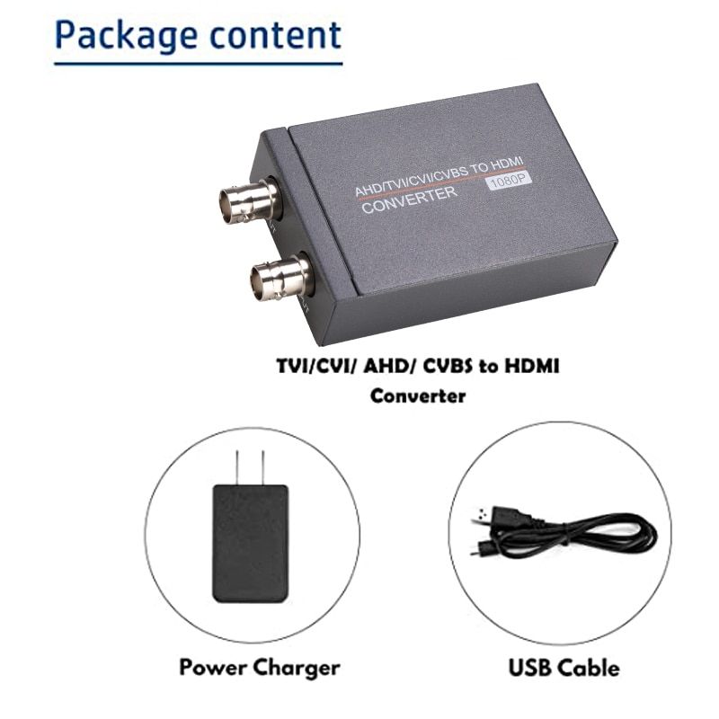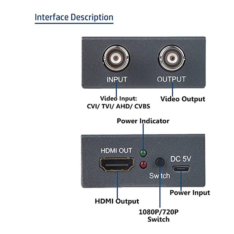 1. Plug and play, it converts TVI CVI AHD CVBS security camera signal to HDMI display.
