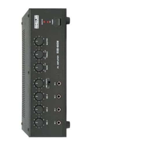 -4 Mic & 1 Aux Inputs.-Preamplifier Output for connecting to a Booster Amplifier and for recording the programme.-Instant transfer to DC power (Car Battery) if AC power fails.-Cut type Bass & Treble Controls.