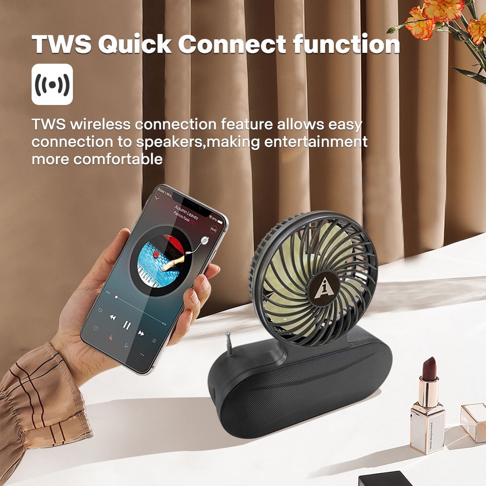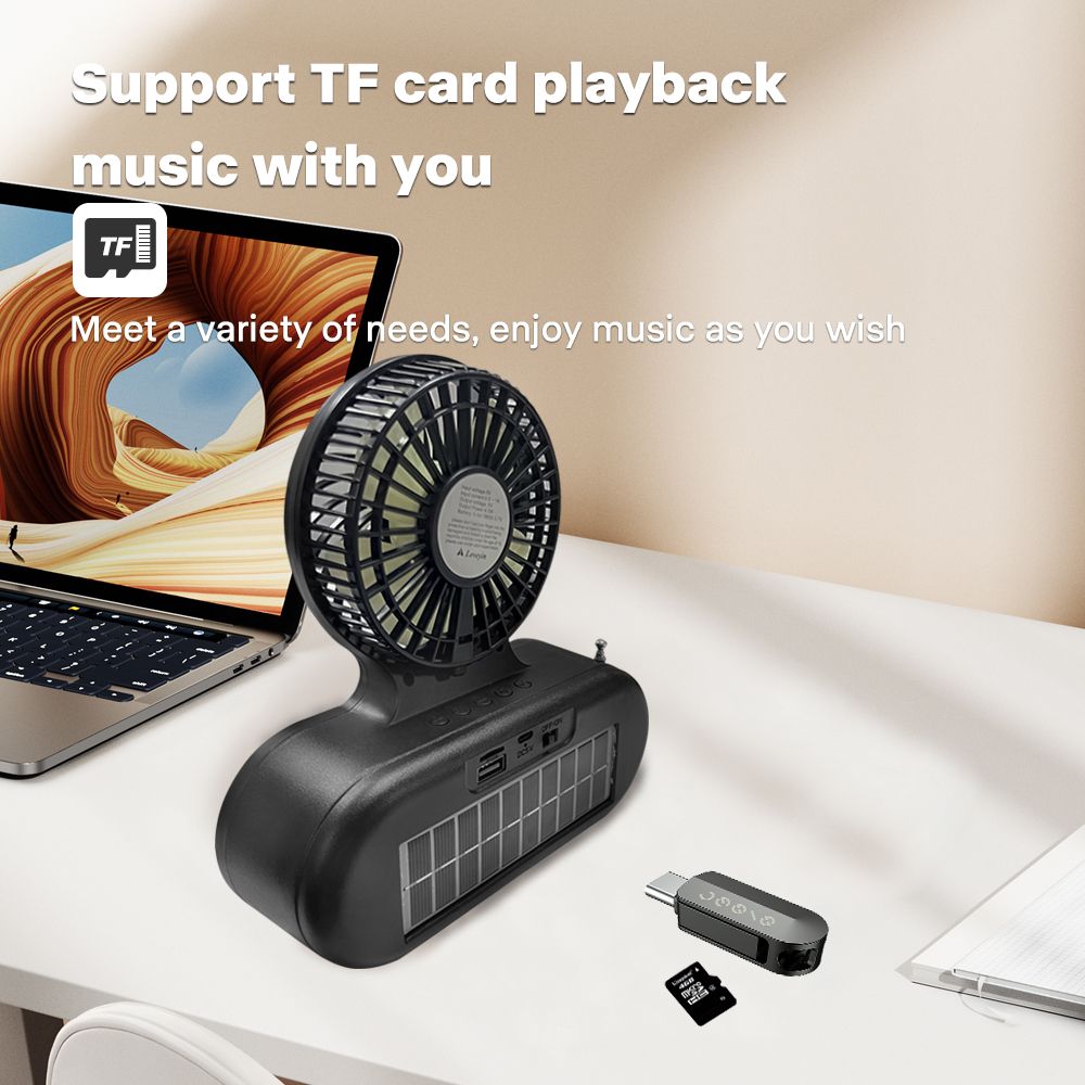 - The flashlight function provides a strong light mode for night lighting needs. The fan function can provide users with cool wind, especially suitable for outdoor activities or hot summer days. The radio feature allows you to listen to radio programs in the AM/FM band, keeping users up to date with the latest news and music. The Bluetooth speaker feature allows users to connect to a mobile phone or other device via Bluetooth, play music or receive calls wirelessly.