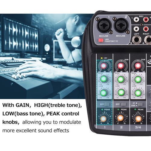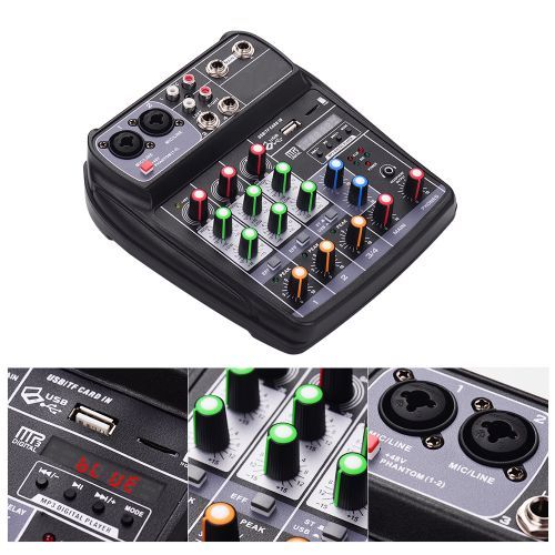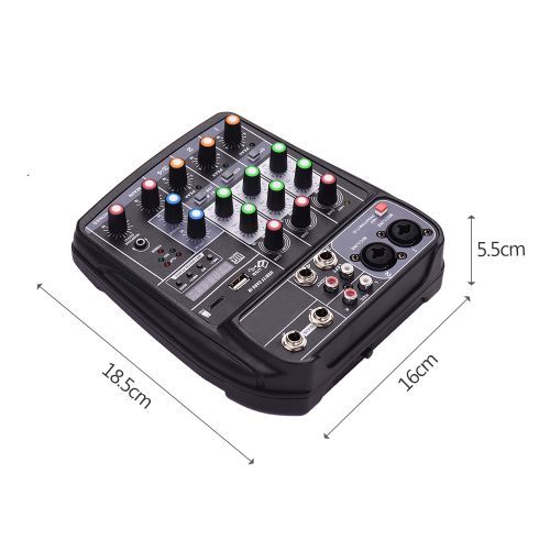 Features:Compact size 4-channel mixer with reverb effect, is suitable for home music recording, webcast, karaoke, network singing, etc. 5V micro USB supply, can be powered by adapter, or computer, super convenient to use.