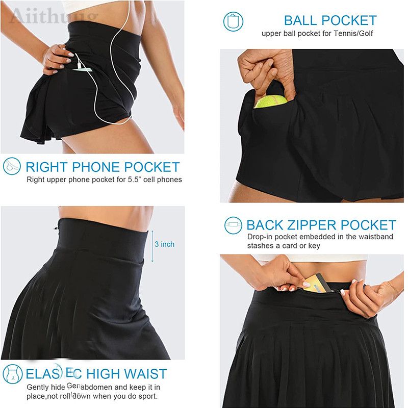 AthleticTennisGolfSkortsSkirtswomen:withPocketwithZipperWorkoutRunningSportsPleatedSkirtsCasual