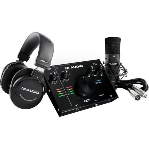 Designed for solo performers in search of studio-quality recordings, the M-Audio AIR 192-4 Vocal Studio Pro Pack combines the AIR 192-4 24-bit / 192 kHz audio interface with the NOVA Black condenser microphone and a pair of HDH40 monitoring headphones to create an all-in-one solution for computer recording projects.