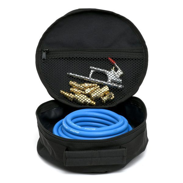 The Blubird Air accessory kit contains many of the air compressor fittings and hose you will need in one reusable storage bag. This kit is perfect for use around your home or anywhere where you need to fill tires or other items requiring air and also your air tools. The storage bag allows your fittings to be readily available quickly.
