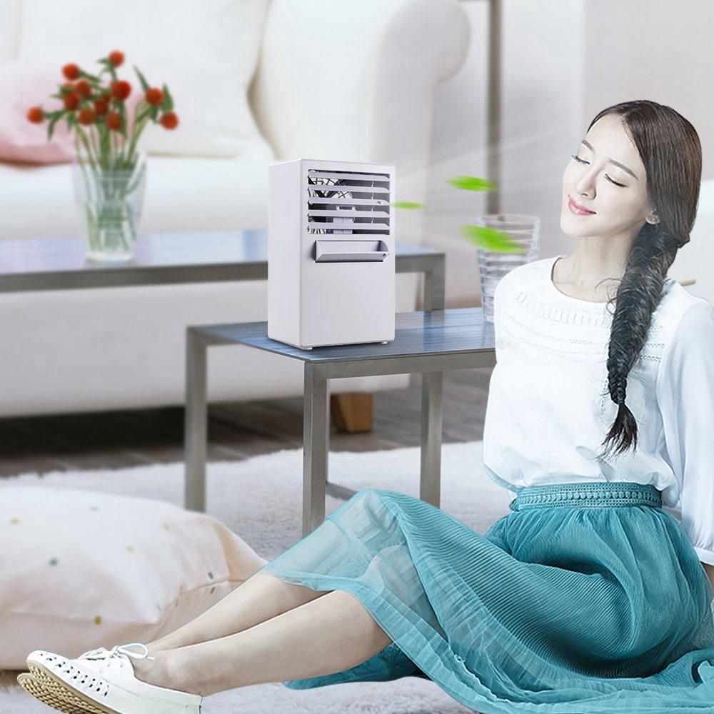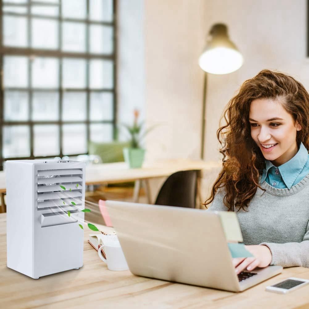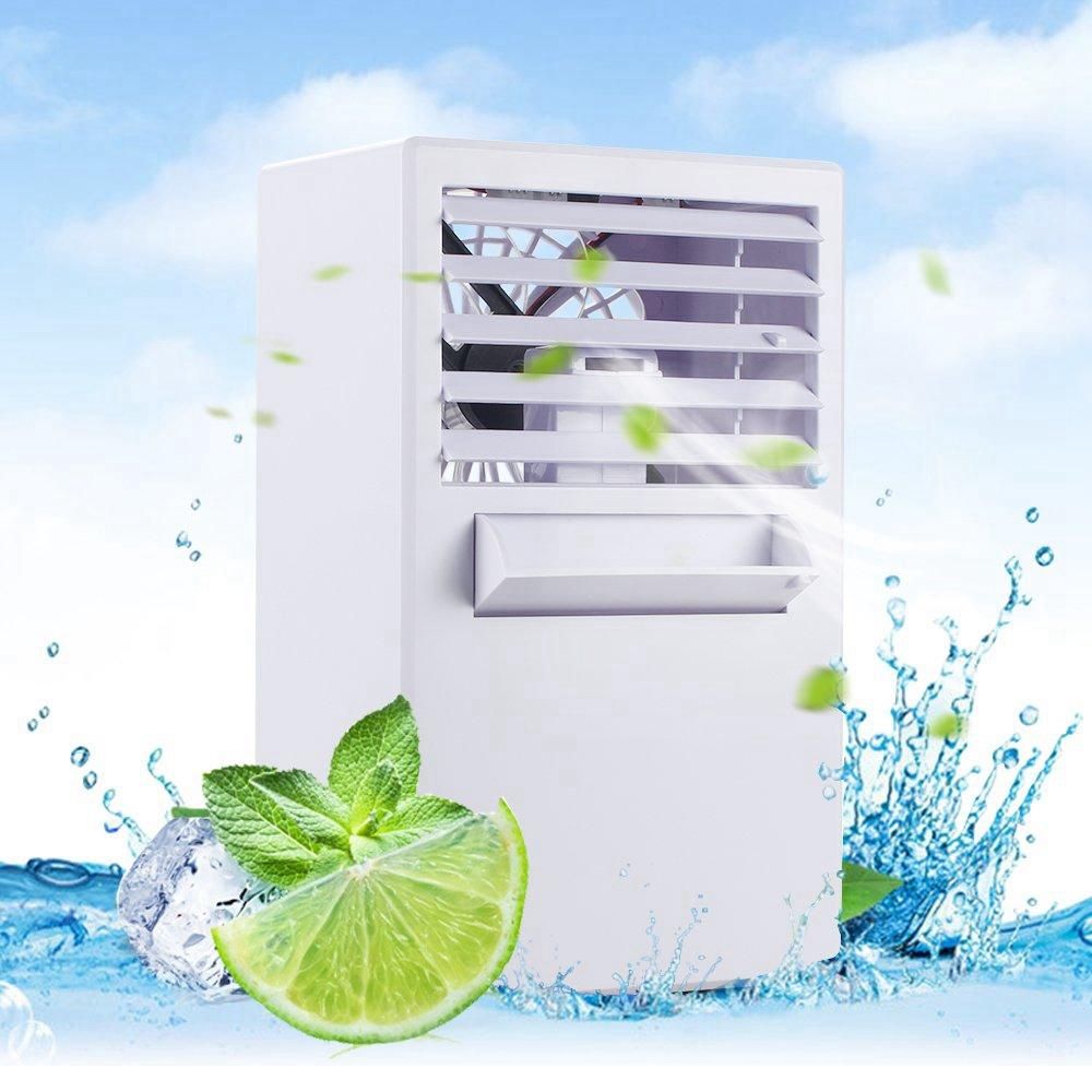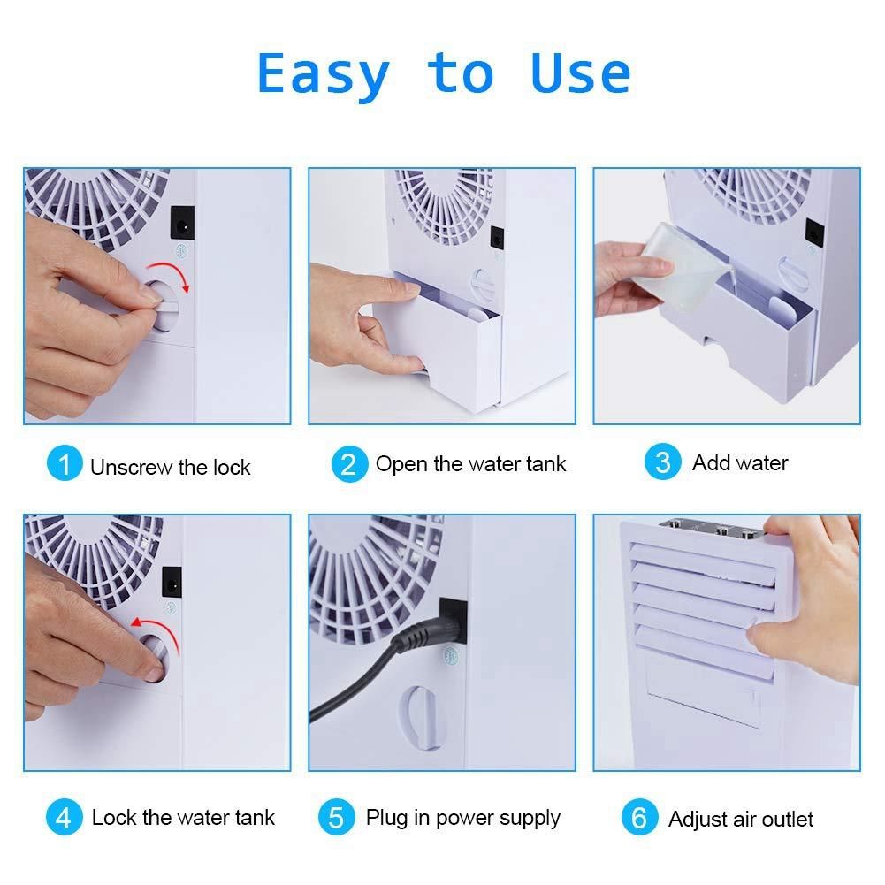 Based on the natural water evaporative technology,you add water&ice Square in the water container,the fan blows out cooling wind to cool you down instantly.erfect for your bedroom,office,dorm room,on your desktop and table top.