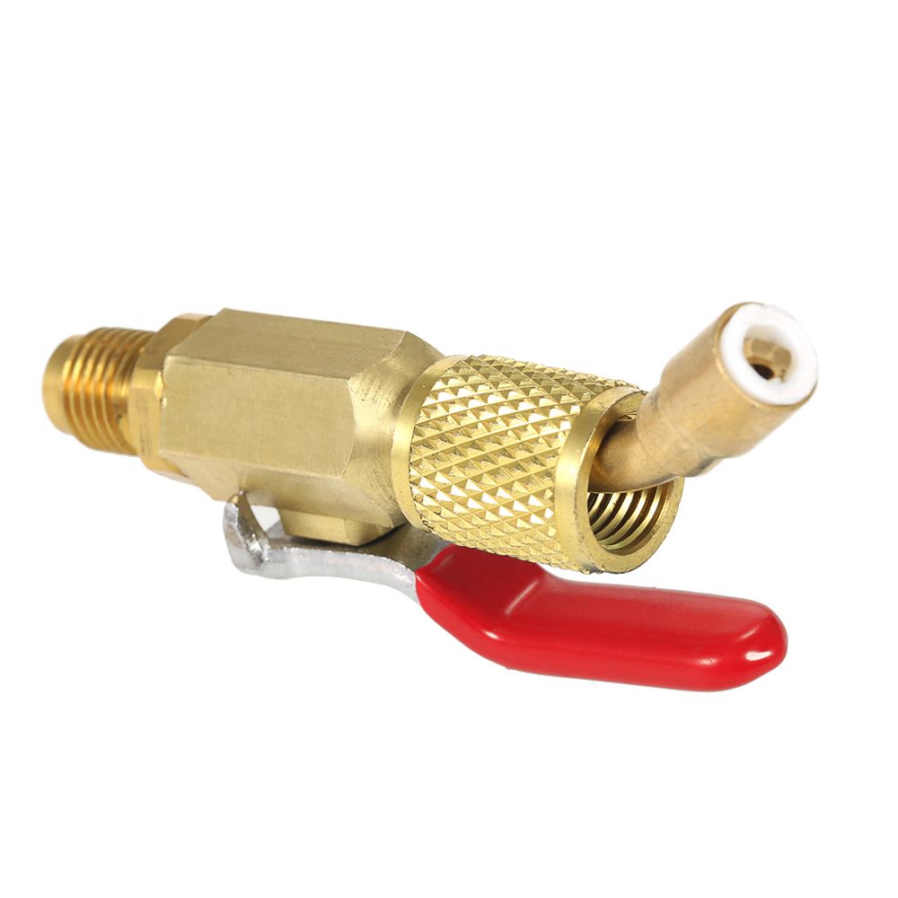This is a universal refrigerant R410A R134A A/C shut valve for HVAC refrigeration charging hoses.
