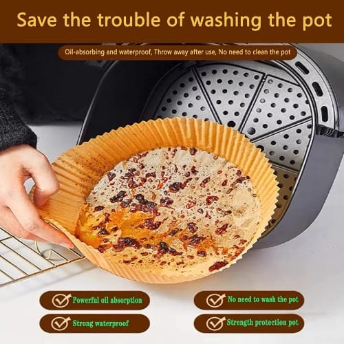 Ultimate Air Fryer Experience: What & rsquo;s the only worst part about roasting something delicious? Yes, cleaning! Revolutionize your cooking and cleaning game with these disposable air fryer liners. Every package contains 50 pieces of conveniently pre-cut and