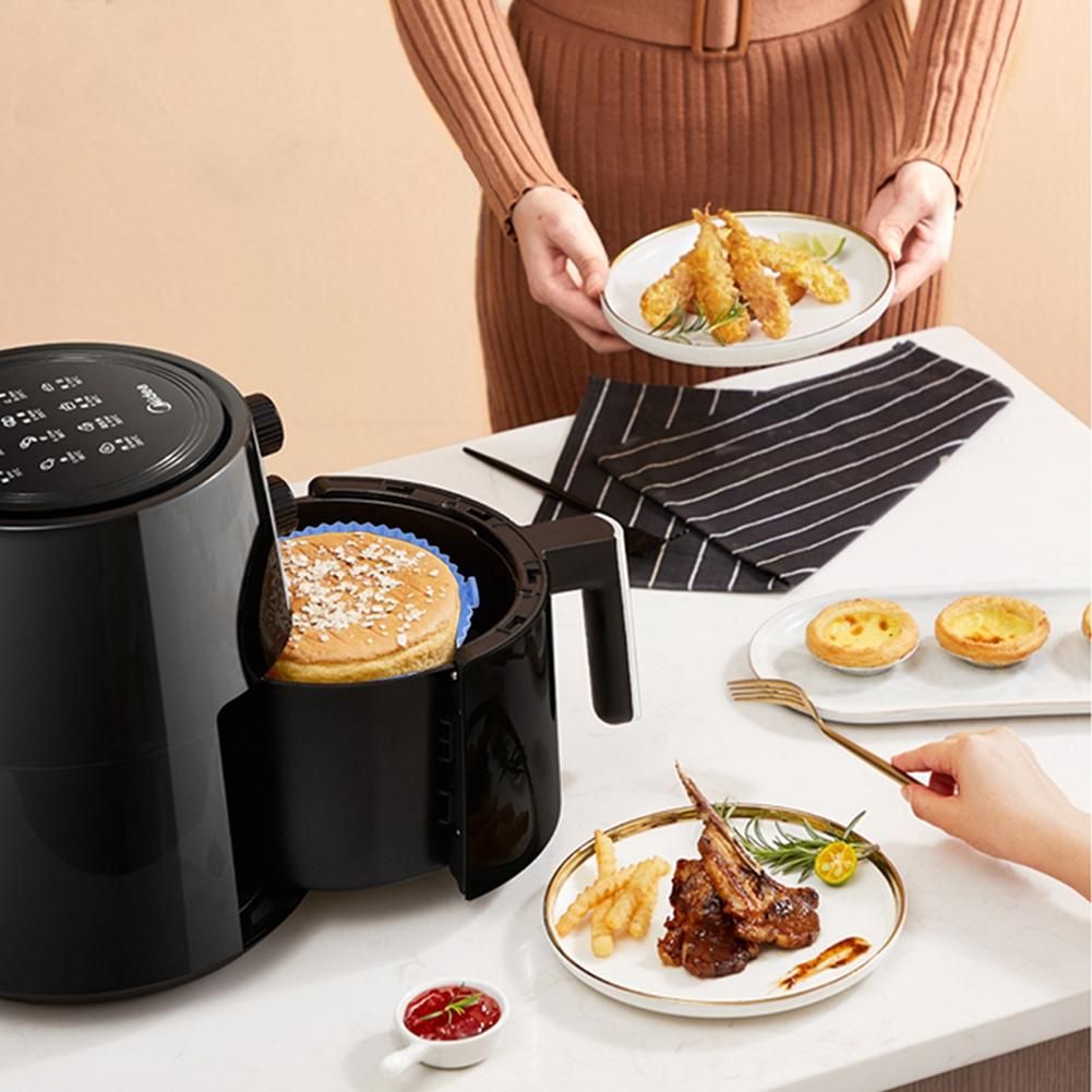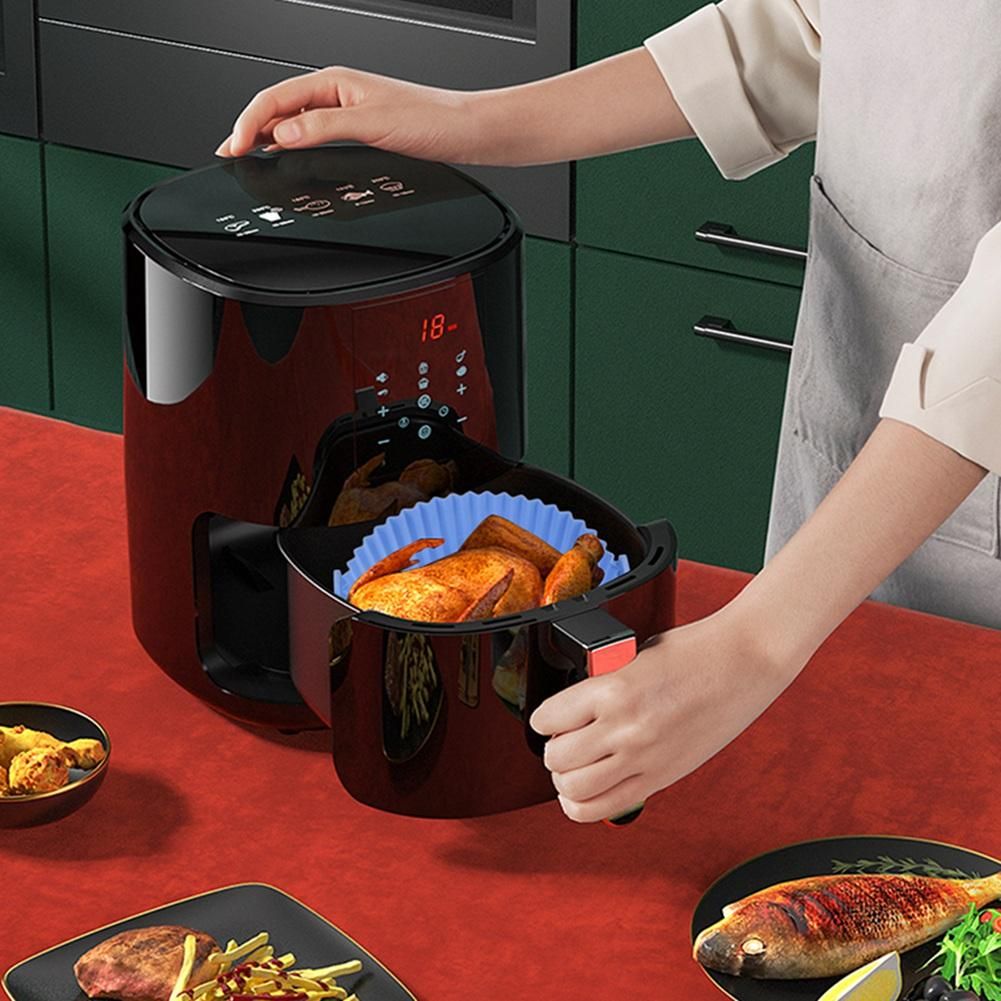 [Easy to use] The inner pot of this non-stick silicone air fryer has a round bowl shape that doesn't need to be ripped, folded, cut or bent, so you can put it right in when you're ready to cook. Raised edges keep the sides of the fryer and keep food from sticking to them, and separate ear hooks provide easy access to food.