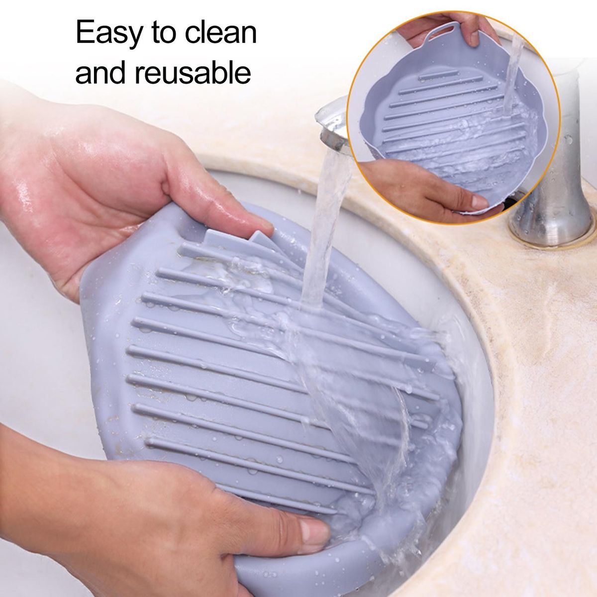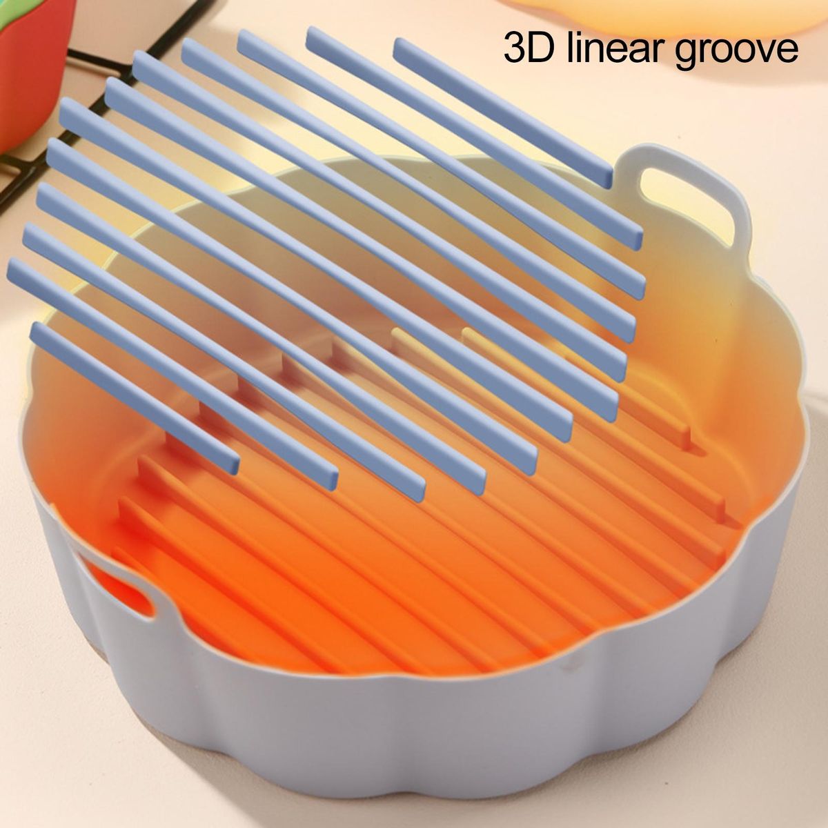 The silicone tray provides evenly heating, double handle, oil draining design, groove design, etc. There are 2 sizes and 5 colors for you to choose from.