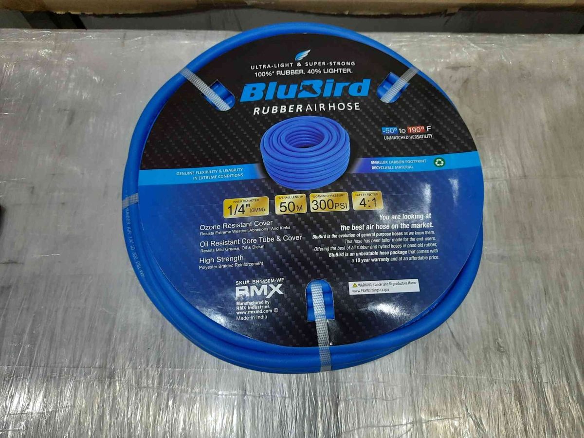 1/4" (6MM) X 50Meters of BluBird 100% Rubber Air hose