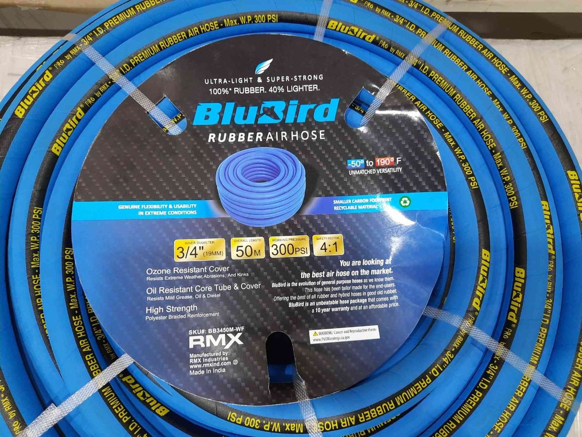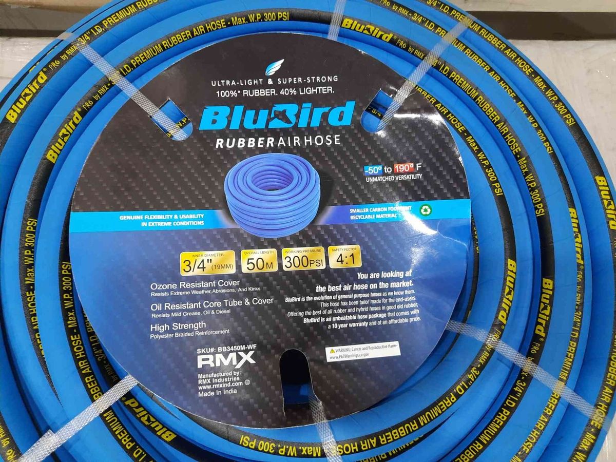 3/4" (19MM) X 50Meters of BluBird 100% Rubber Air hose