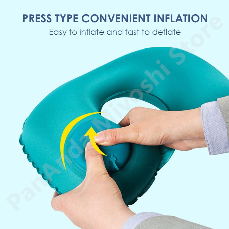 U Shape Neck Cushion Automatic Air Inflatable Pillow Compress Ring Pillow For Airplane Car Outdoor Travel