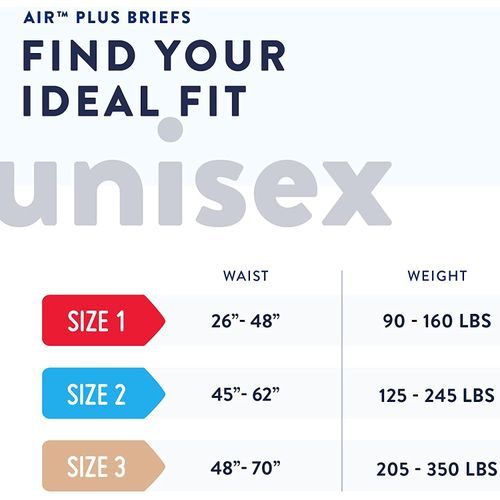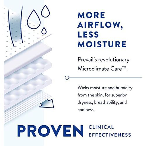 Product DescriptionPrevail Air Plus Briefs offer ideal protection, comfort and breathability for those dealing with heavy bladder or bowel leakage. The Prevail Microclimate Care system creates a favorable microclimate by incorporating performance features to help maintain normal skin temperature and moisture at the skin surface, which supports healthy skin. Microclimate Care features includes: MaxSorb Gel Technology which locks up wetness to help you feel cleaner, fresher, and drier; 100% breathable moisture barrier that allows skin to breathe; Dri-Fit system to help keep skin dry and healthy by reducing friction; Omni-Odor Guard helps neutralizes odors before they start; Skin Smart Fabric helps protect skin with vitamin E, Aloe, and chamomile; Expandex Wings for a more contoured fit, Easy-Lock Fastener that grip and hold without being sticky, Cloth-Like Outer Fabric is soft and comfortable, and Direct-Lock Panels offer an adjustable fit.