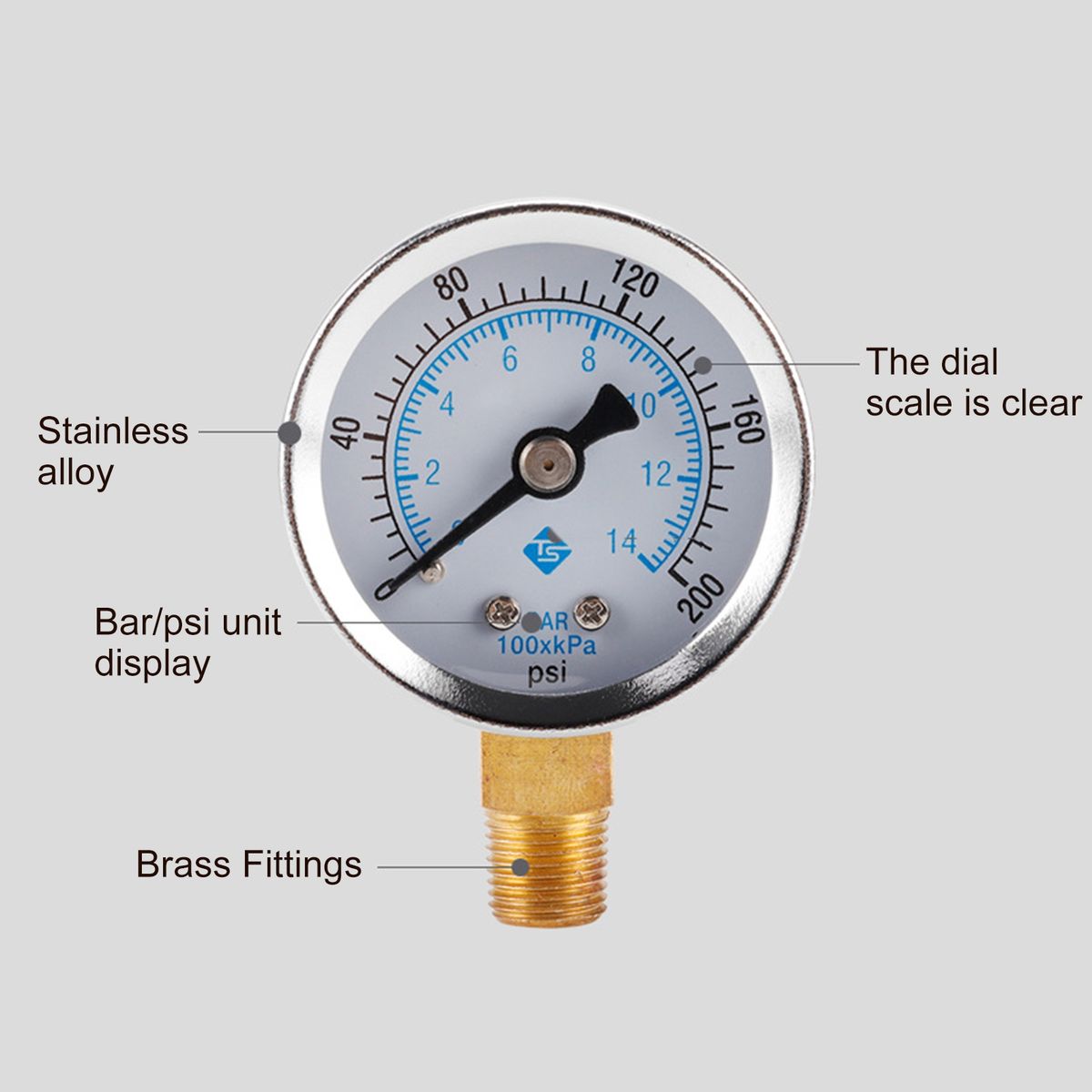 Clear dial with dual two colors scales(bar/psi) and precise markings design make it easy to read. High precision design ensures stable performance.