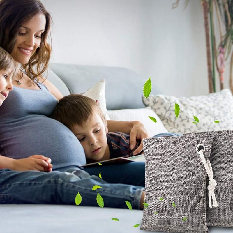 Air Purifying Bags Bamboo Charcoal Bags DeodorizerThe top has a loop for easy hanging on hooks or hooks. Sufficient size to absorb odors in cars, closets and other enclosed areas, producing moisture and odor;