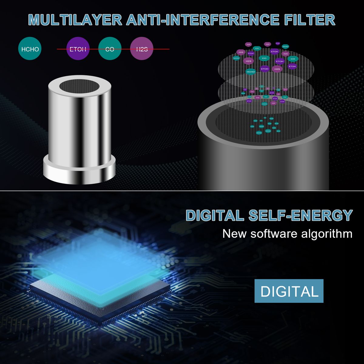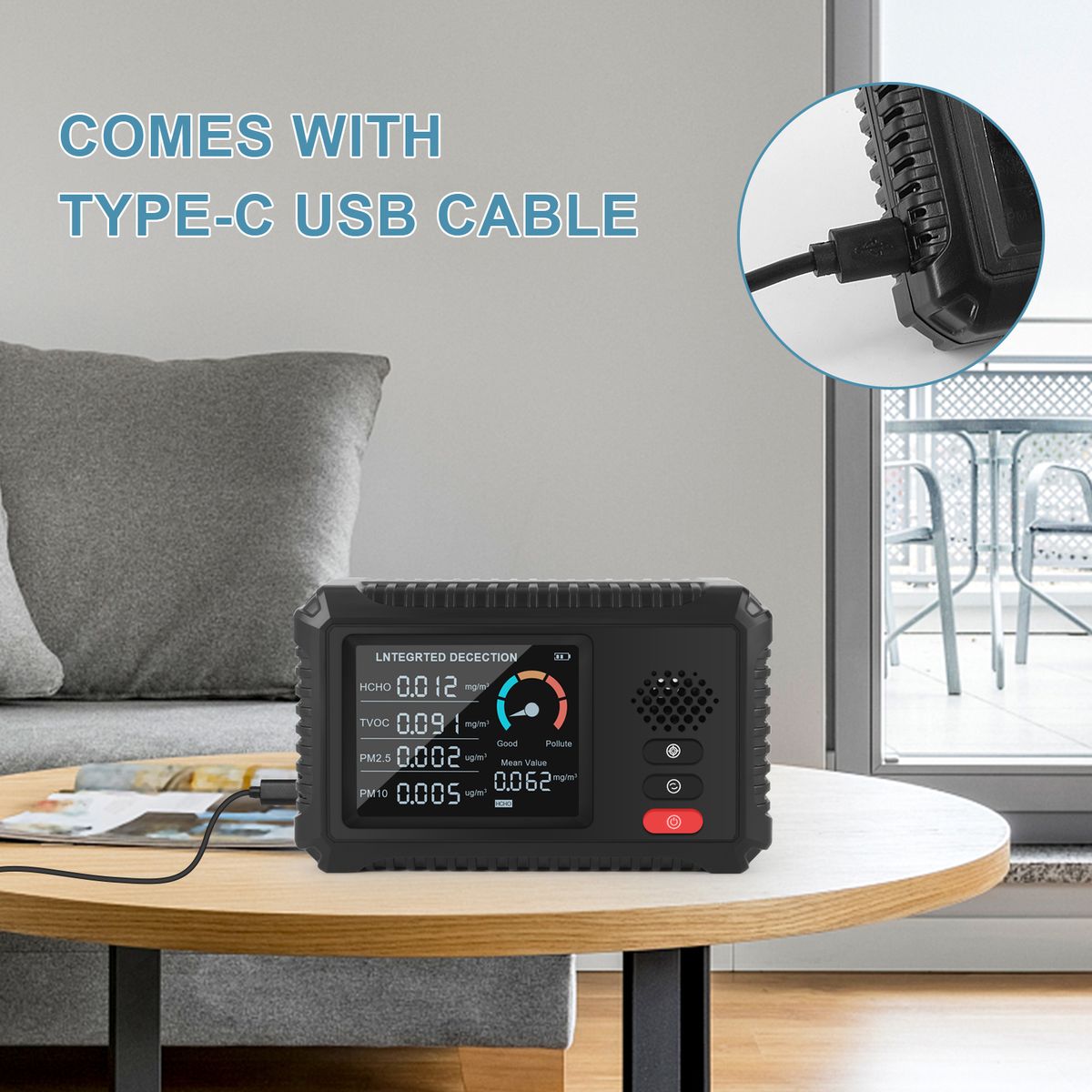 Multi-function: It can accurately detect carbon monoxide (CO), carbon dioxide (CO2), formaldehyde (HCHO), volatile organic compounds (TVOC), and particulate matter (PM2.5/PM10) in the air.