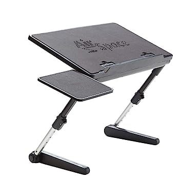 Adjust, Tilt, Split You can easily adjust the angle and height of this laptop desk cart so that it can be perfect fit for all members of the family The desktop can swivel 360 & deg; to offer a versatile range of motion and the screws under the desktop can be adjusted to keep the 2 splitting top panels aligned if needed