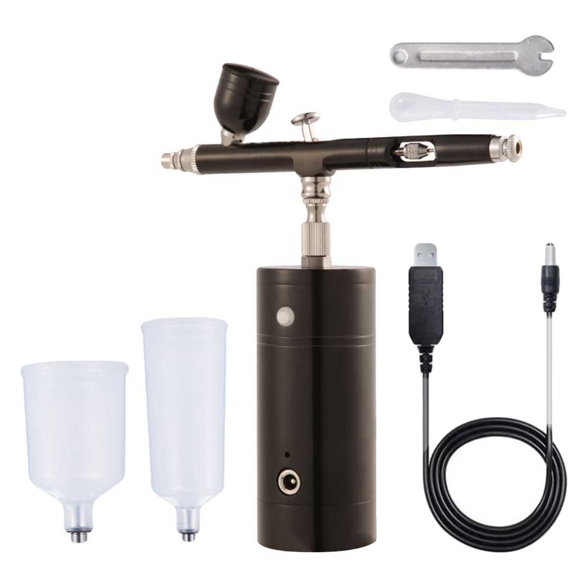 1 Piece Airbrush2 Pieces Paint Cups1 Piece USB Charging Cable1 Piece Straw1 Piece Screwdriver