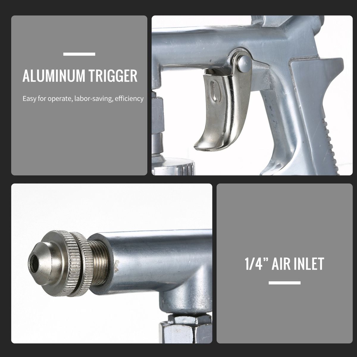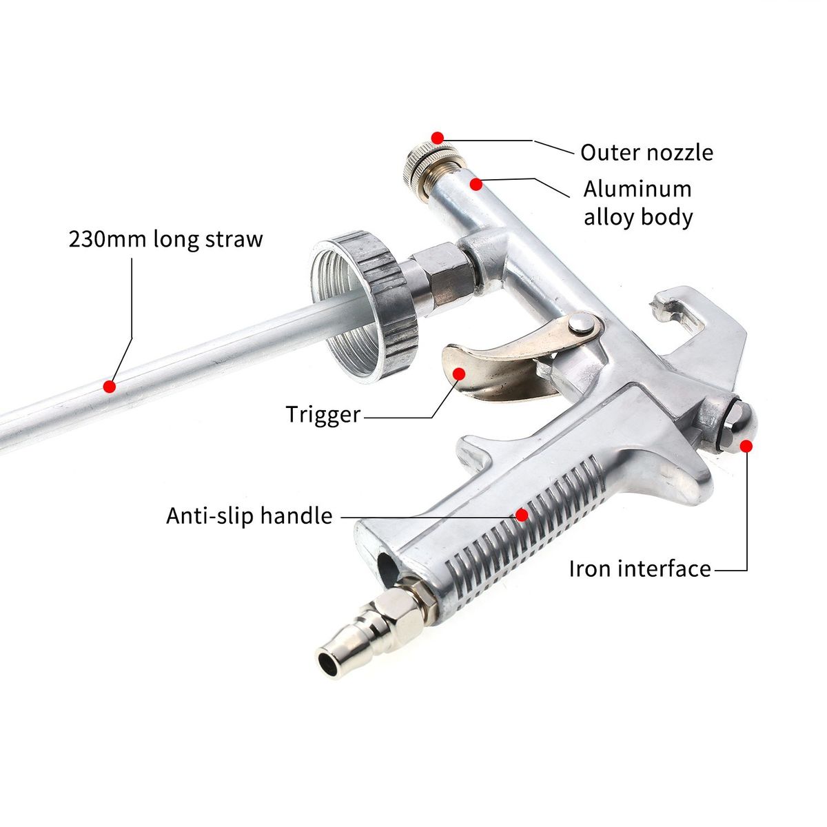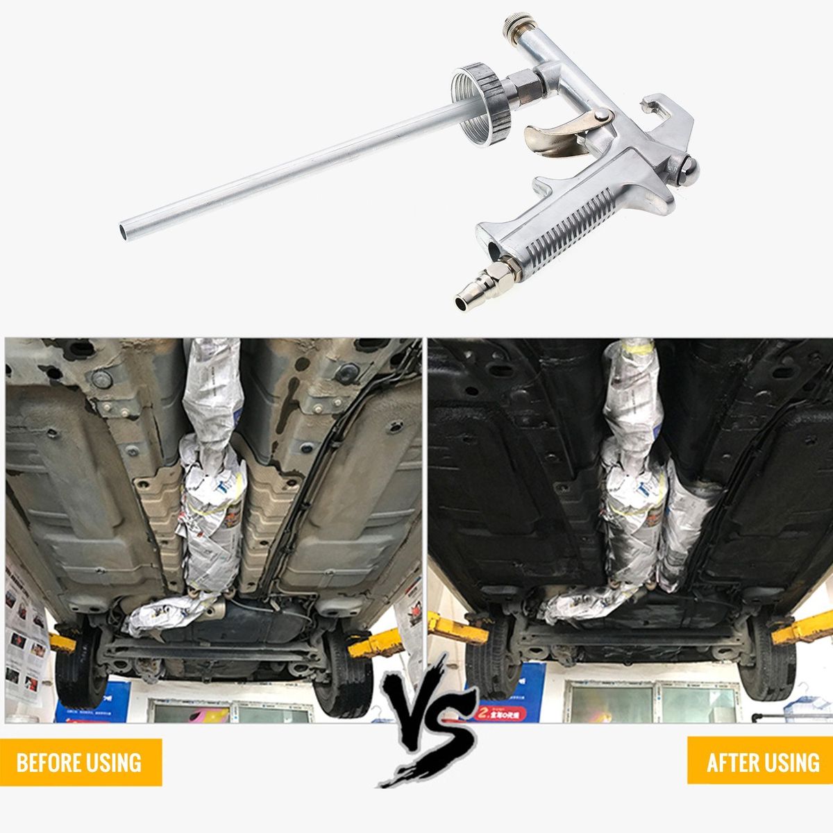 Durable pneumatic air application gun,excellent for applying automotive rust proofing,rubberized undercoating,chip guard,truck bed liner and other general purpose coatings.