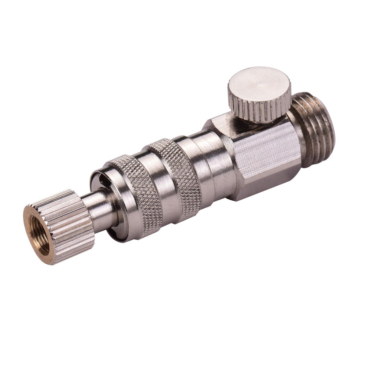 One female part with adjustable air valve 1/8 quot; BSP male connects to G1/8 female connector air hose.