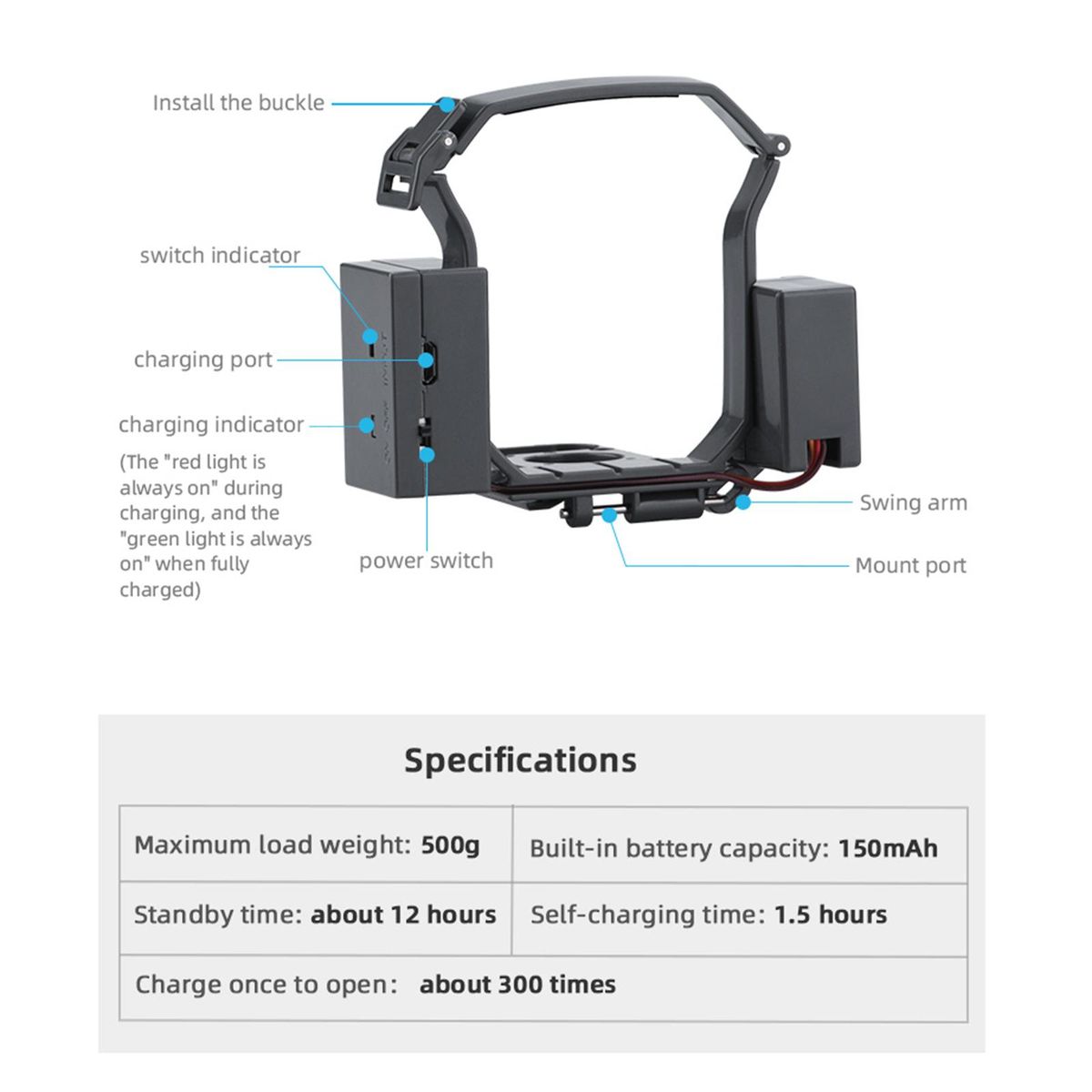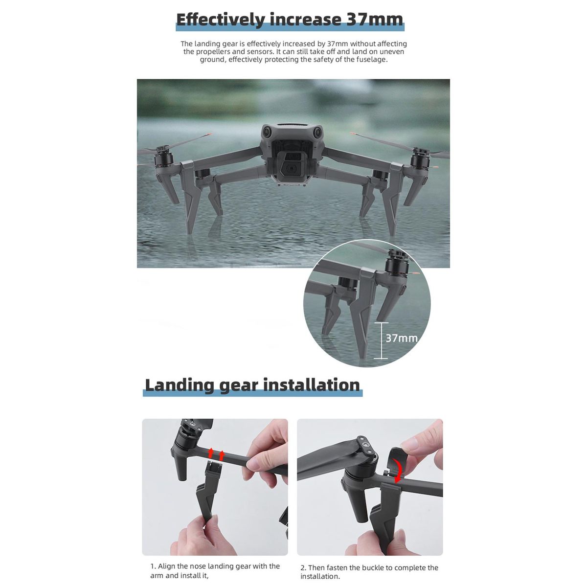 Features: The height of the front landing gear is increased by 3.7cm, and the height of the rear landing gear is increased by 3cm, can effectively prevent ground debris from contaminating the body or damaging the gimbal and body during take-off and landing
