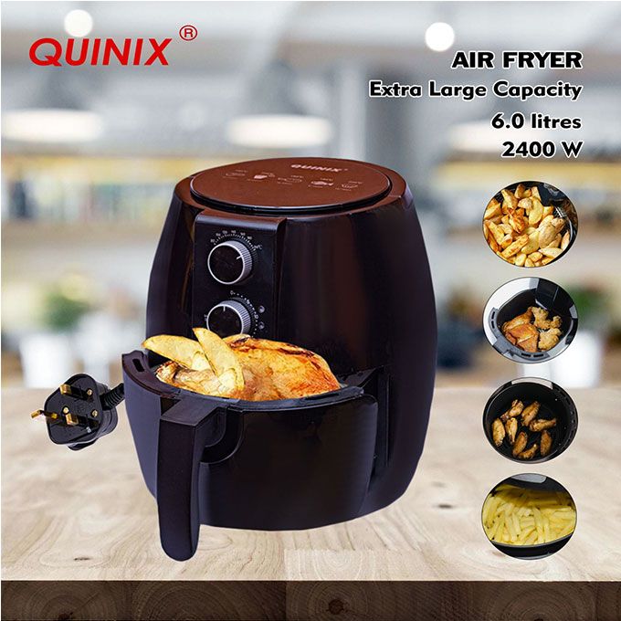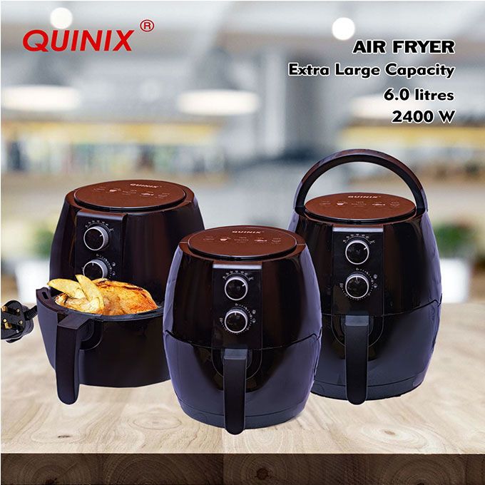 The Quinix 6L AirFryerhelps you reduce up to 80% of your fat intake enabling you to fry food without the need of oil. It features rapid air technology, an adjustable temperature control and a 30 minute timer that helps you pre-set your cooking time. The Integrated air filter keeps your kitchen fresh and clean while parts of the air fryer are removable and dishwasher safe. Included is a recipe booklet to help you kick start your healthy cooking regime.