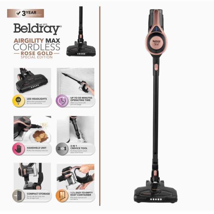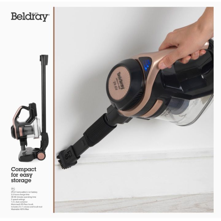 - This Beldray vacuum has a lightweight ergonomic design and will allow up to 50 minutes cordless cleaning from a single charge.