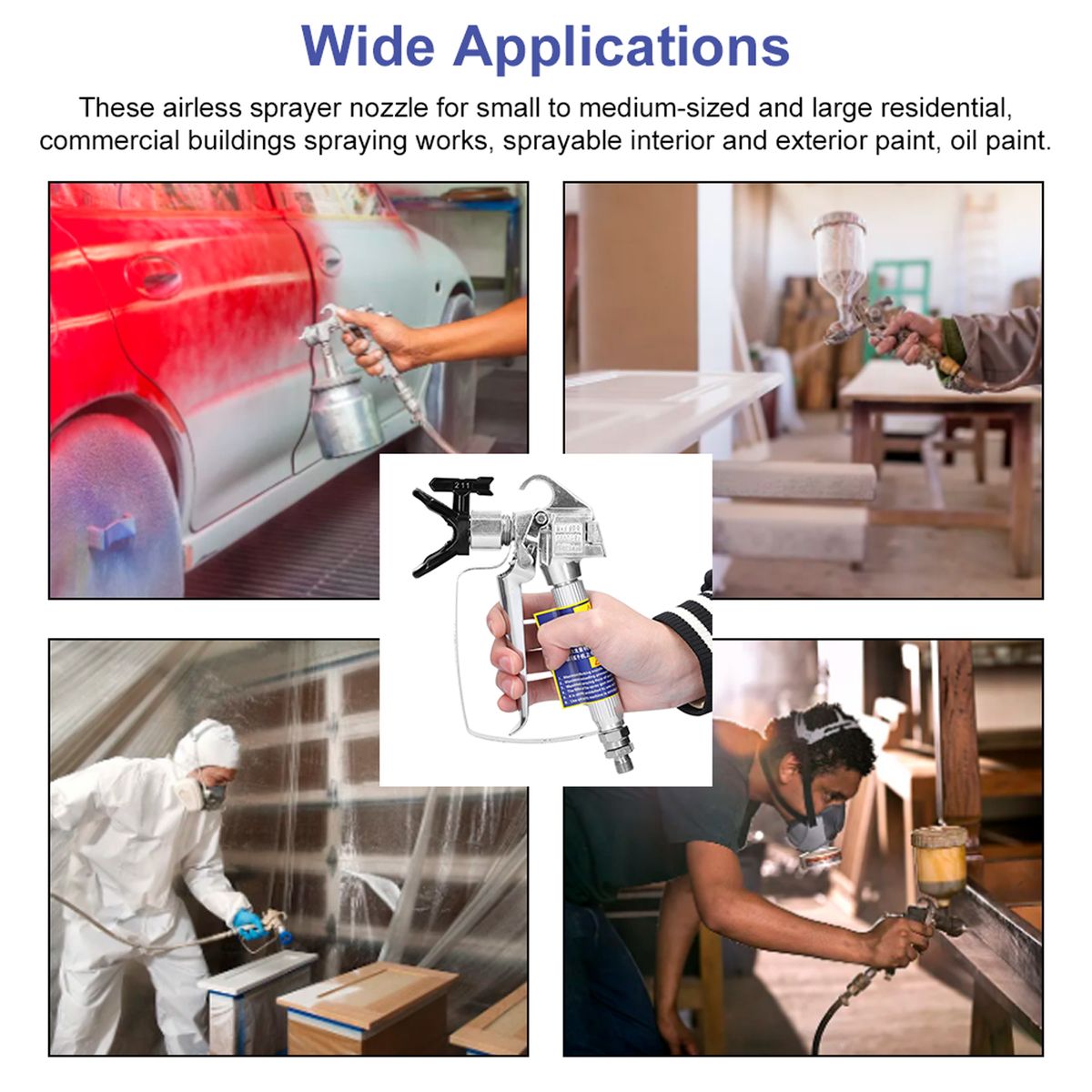 These airless sprayer nozzle for small to medium-sized and large residential, commercial buildings spraying works, sprayable interior and exterior paint, oil paint.