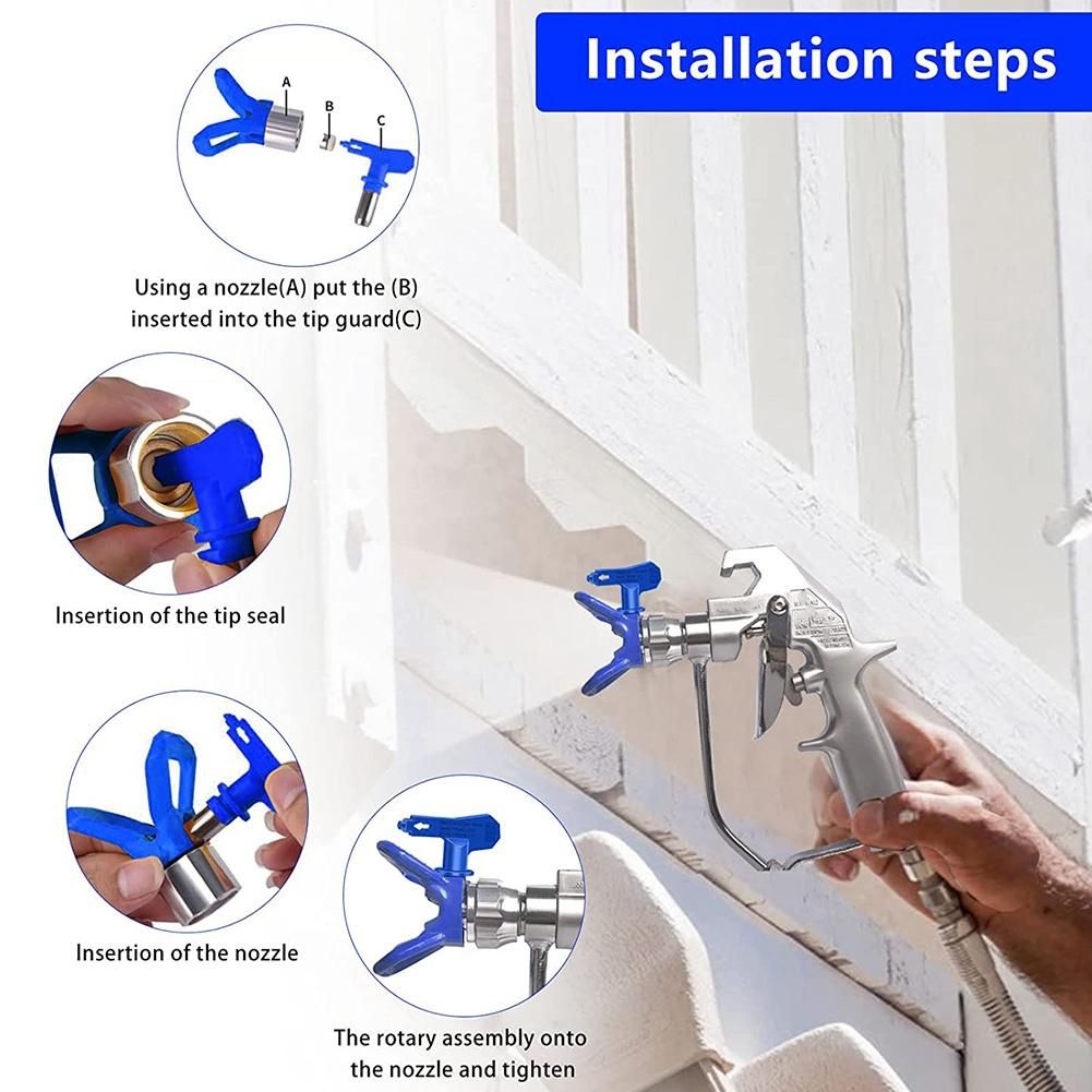 EASY TO INSTALL: The paint spray tip is easy to install without extra tools; First insert the tip seal into the guard base, and then put the spray tips into the guard base, finally rotate to fix it, easy to operate in a few moments.