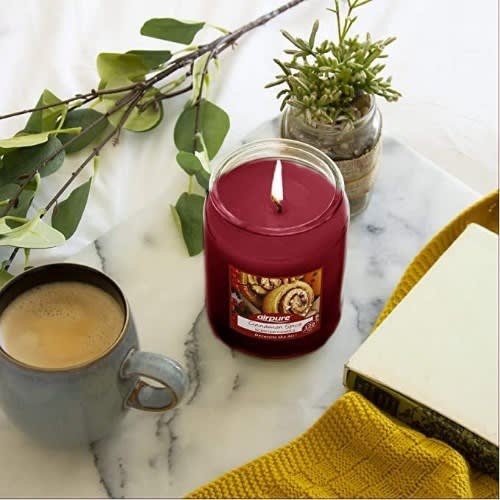 Airpure Scented Candle Jars are designed to make a delightful ornamental fragrance. It adds an aesthetic element to any area while also providing a handy method to bring high-quality aroma to your home & rsquo;s interior. These classically shaped jar candles fit any decor on shelves, tables or counters in contemporary or traditionally fashioned rooms. These 18oz. big scented candles 150g x 4 have a long burn time of up to 120 hours and emit an enticing smell that will freshen and elevate any room in the house. Ideal for the home or office or wherever you need a scent that & rsquo;s refreshing to the senses. Each jar candle is equipped with a tightly fitting lid that ensures the flame is extinguished when not in use. Decorate the air the luscious fruity smell of the Apple cinnamon that will elevate the spirits of everyone who breathes it in. Enjoy the allure of candlelight and create the atmosphere you desire. Candle jars make it easy to switch scents to create a mood or to enhance the holidays. Ideal for home staging or Christmas gatherings. As with the other Airpure fragrance products, this fragrance candle is 100% vegan and cruelty free