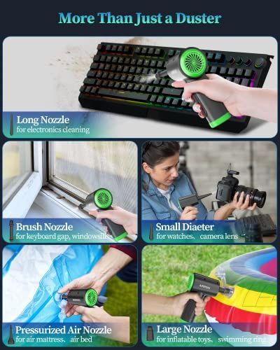 - Powerful Deep Cleaning Compressed Air Duster: Wind power of the eletroni air duster an reah RPM, one minute deep leaning of tiny dust for omputers, keyboards,leans debris and dust from any eletroni devie, handy in your home or offie or ar.