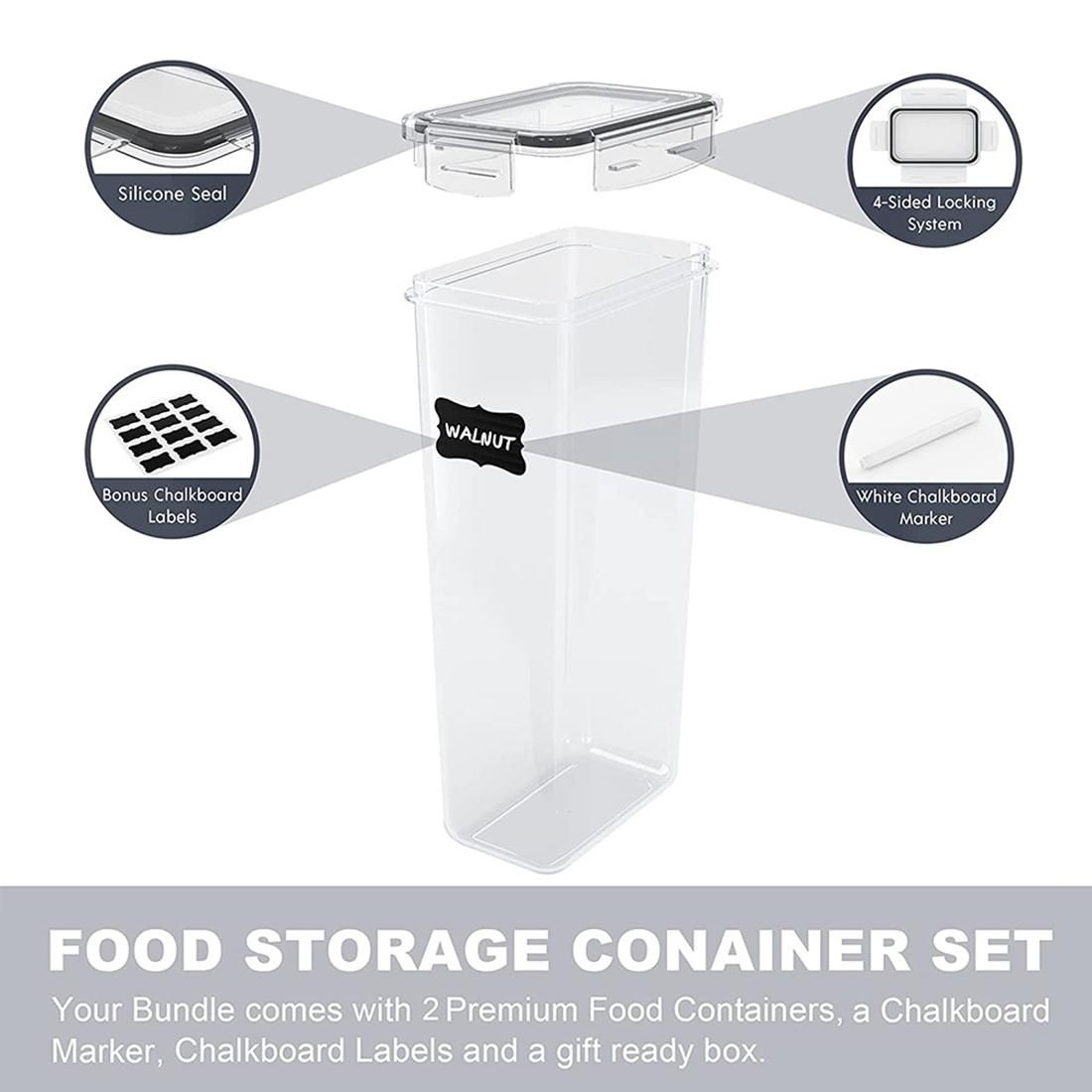 Detailed Information About The Product:We are serious about your health. Our food storage containers are made of premium plastic, BPA Free. Good for you and your family. AIRTIGHT - Silicone gaskets make these storage containers airtight. The 4 side-locking lids will always keep your food dry and fresh.