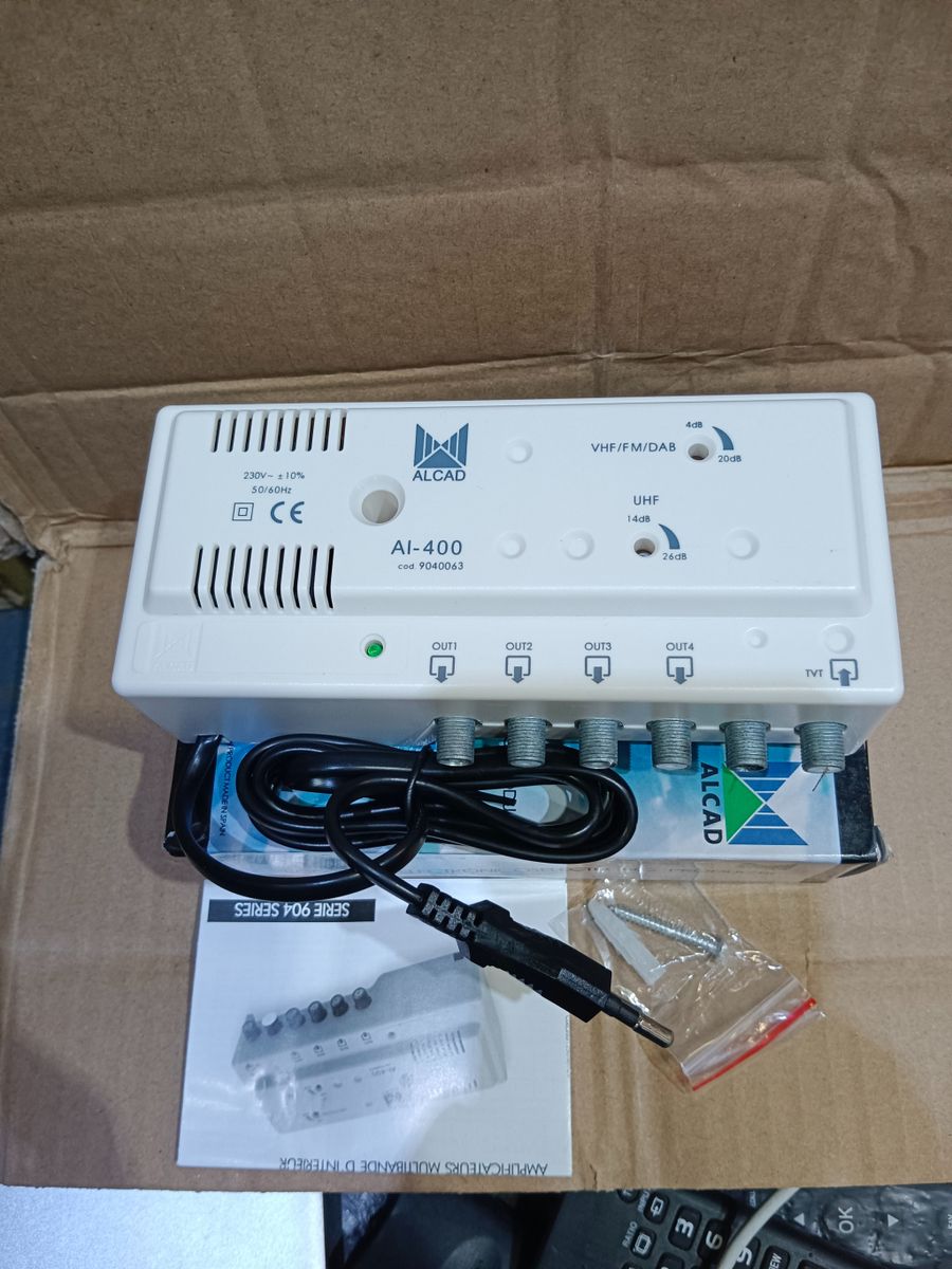 The Alcad AL-400 is a single-channel amplifier designed for use with terrestrial television signals. It is used to amplify weak TV signals and distribute them to multiple TV sets. The AL-400 is a compact and versatile device that is easy to install and provides reliable performance. Some of its key features include: Frequency Range: The AL-400 is designed to operate in the VHF and UHF frequency bands, making it compatible with a wide range of terrestrial TV signals. Gain Control: The amplifier features a gain control that allows you to adjust the signal strength to optimize performance. Low Noise Figure: The AL-400 has a low noise figure, which means it can reduce noise and interference in the signal, resulting in better picture and sound quality. Compact Size: The AL-400 is a compact device that can be easily installed in small spaces, making it ideal for use in apartments, hotels, and other buildings where space is limited. Easy Installation: The AL-400 is designed for easy installation, with a standard F connector input and output that can be connected to most TV sets. Overall, the Alcad AL-400 is a reliable and versatile amplifier for terrestrial TV signals, providing high-quality reception and distribution to multiple TV sets.