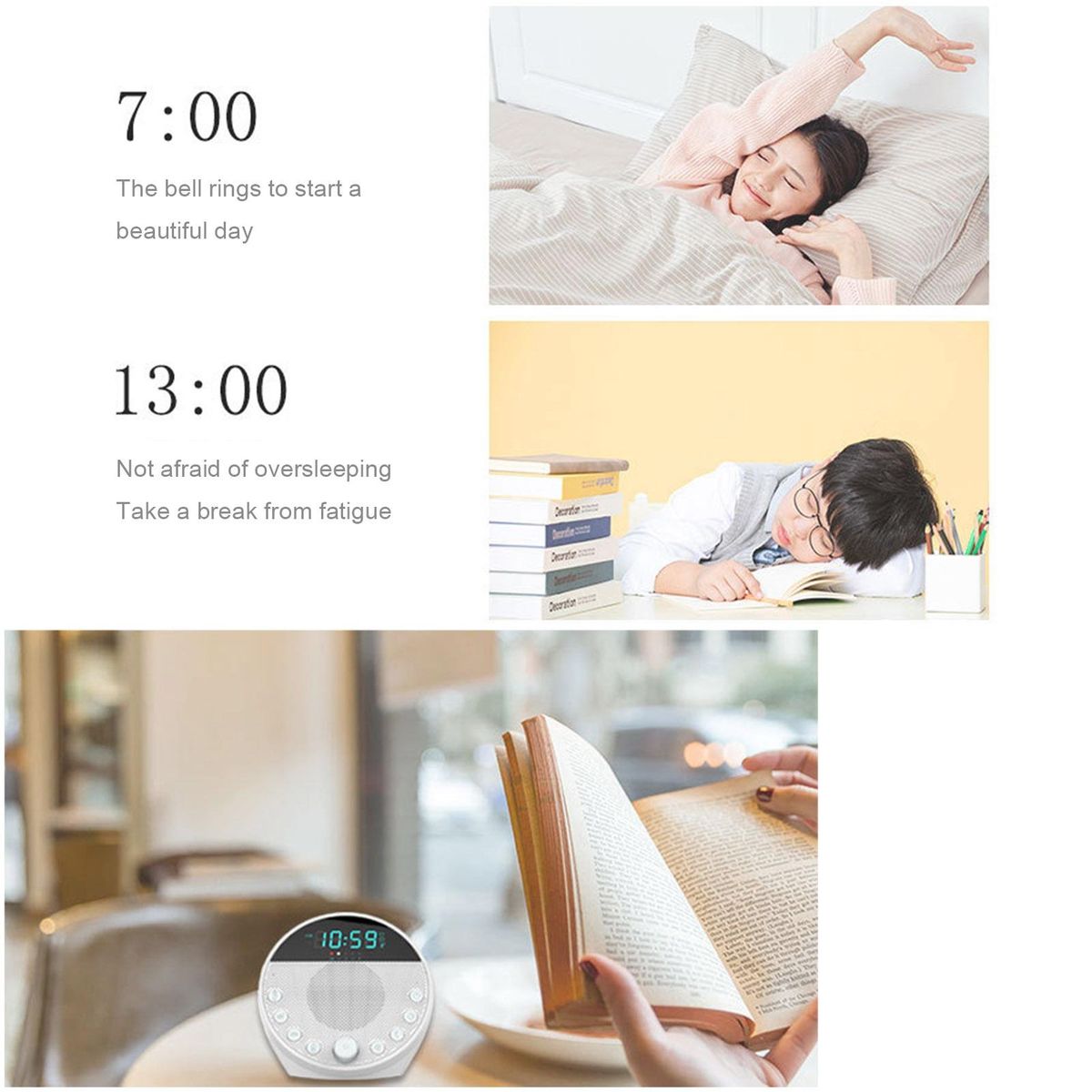 Upgrade your sleep routine with the alarm clock. fall asleep faster, relax deeply, and wake up refreshed every day. say goodbye to restless nights and hello to a more rejuvenating sleep experience. get yours today!