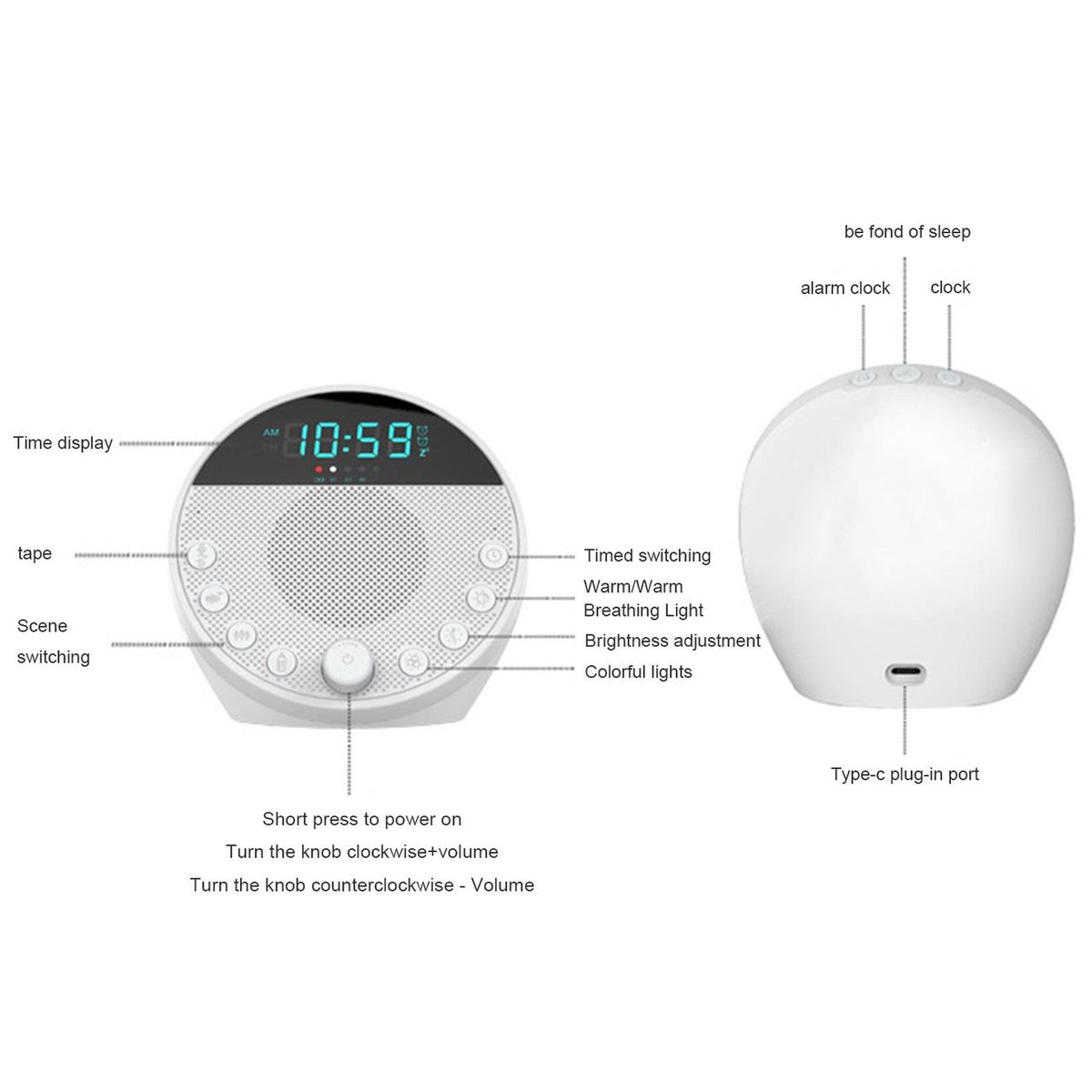 The alarm clock, a user-friendly device designed to enhance your sleep and relaxation experience. with its easy-to-use timer settings, you can effortlessly set the duration of your soothing sounds without any interruptions. choose from 30, 60, or 90-minute timers to suit your preferences.