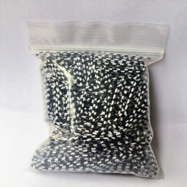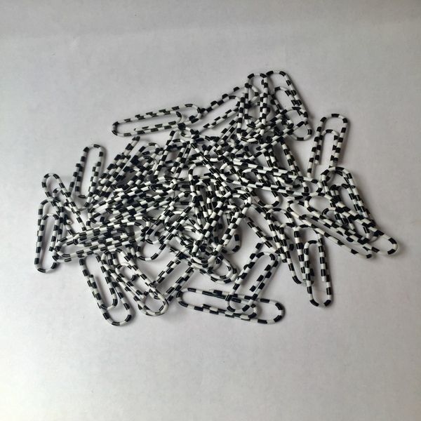 Material: Plastic/Metal- Two-tone striped paper clips- Plastic coated- Length: 26mm- Black/White